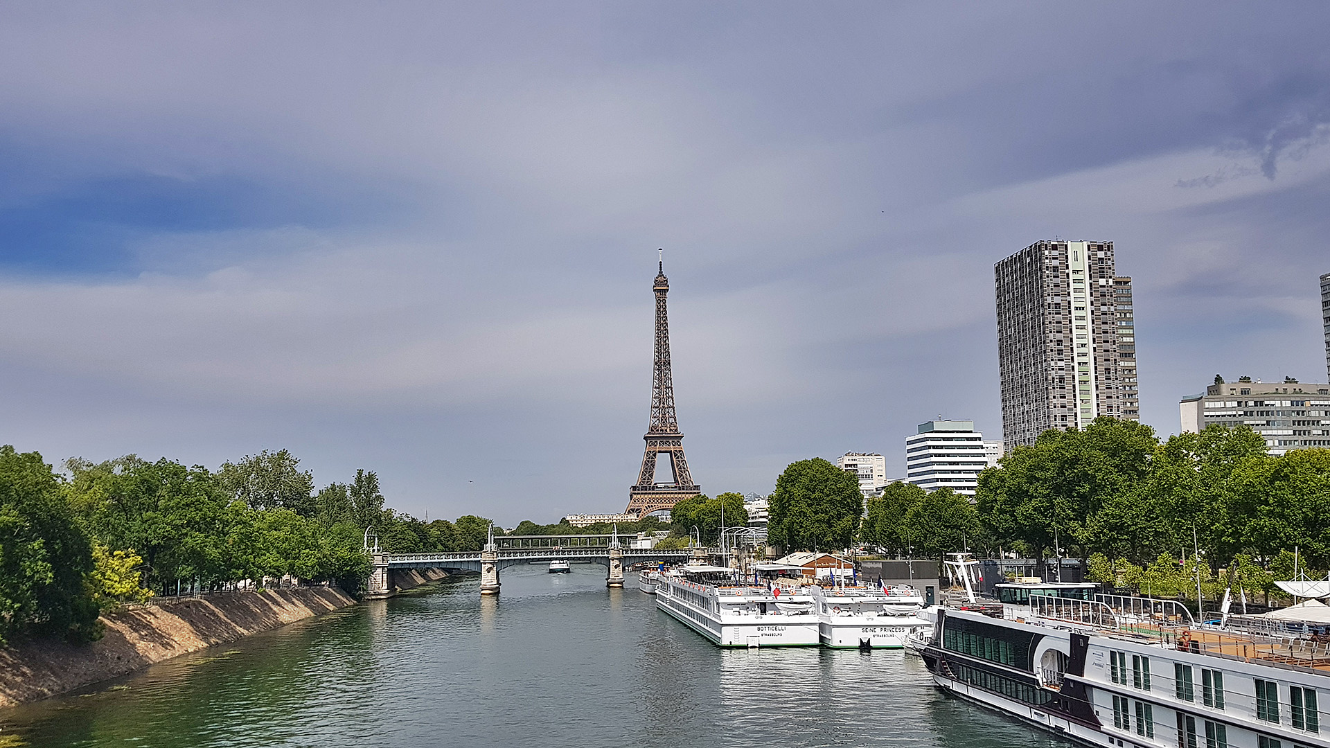 곧장 짐 풀고 근처 산책. 호텔근처 다리에서 바라본 에펠탑.. 아이들은 에펠탑을 처음 보는터라 여기서 바라보는 것만으로도 즐거워했다. 물론 매일 보면서 여행말미 나중엔 지겹다는 말까지 나왔지만,