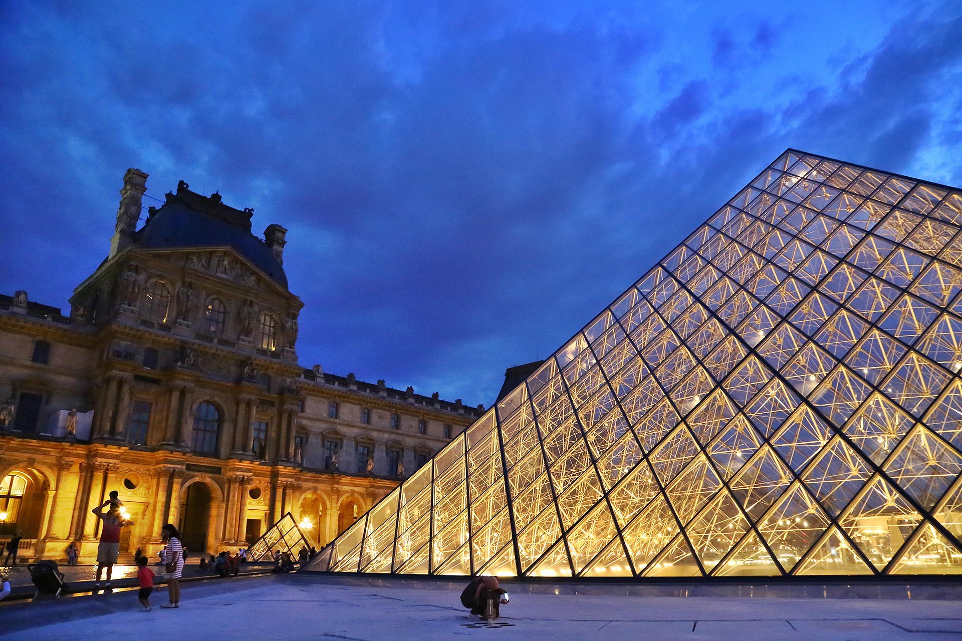 해질녁 루브르 피라미드의 풍경이 꽤나 멋있었다.