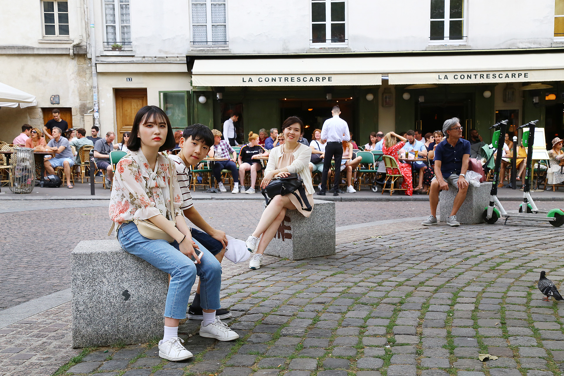 크레페 먹고, 근처에 있는 광장에서 휴식중.