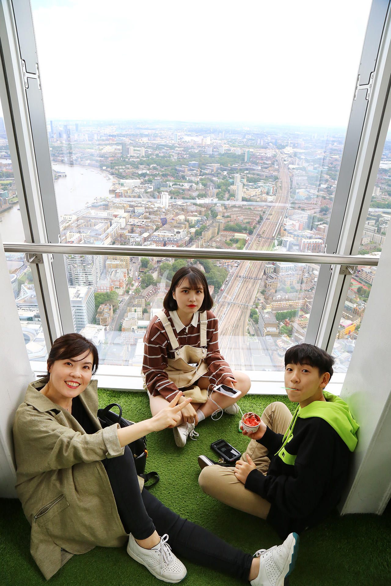 파리나 런던, 특히 런던은 많은 관광지에서 입장시 전문찍사가 (강제로) 아무것도 없는 초록색 배경지를 배경으로 사진을 찍어주고, 나가는 길에 반드시 사진찾는 곳을 지나치게 만드는데, 더 샤드 또한 그랬다. 그냥 뭐 사진은 찍되, 나중에 찾지는 말지 했었는데, 합성된 사진이 너무 근사하기도 하고, 옆에서 철없는 아이들이 "기념인데 하나 사요" 라고 부추기는 바람에 사버렸다.