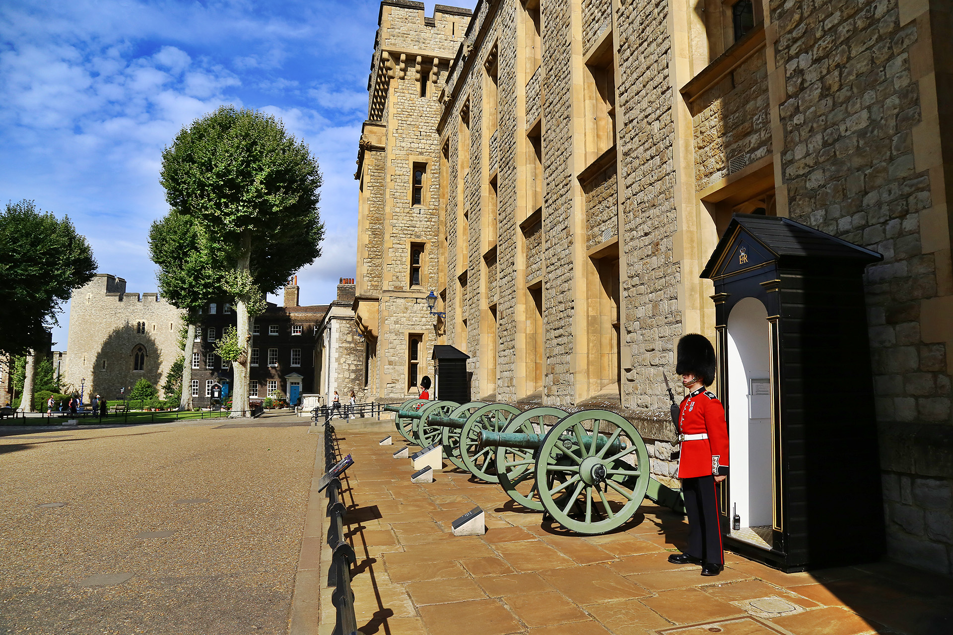 육중한 화이트 타워(White Tower)은 영국 전역에 세력을 떨쳤던 노르만 군사 건축의 전형적인 본보기이다. 화이트 타워는 정복왕 윌리엄(William the Conqueror)이 런던을 방어하고 자신의 권력을 과시하기 위한 목적으로 템스 강변에 건설하였다. 화이트 타워 주변에 지어진 다채로운 역사를 간직한 위풍당당한 요새 런던 탑(Tower of London)은 왕권의 상징물 중 하나이다.