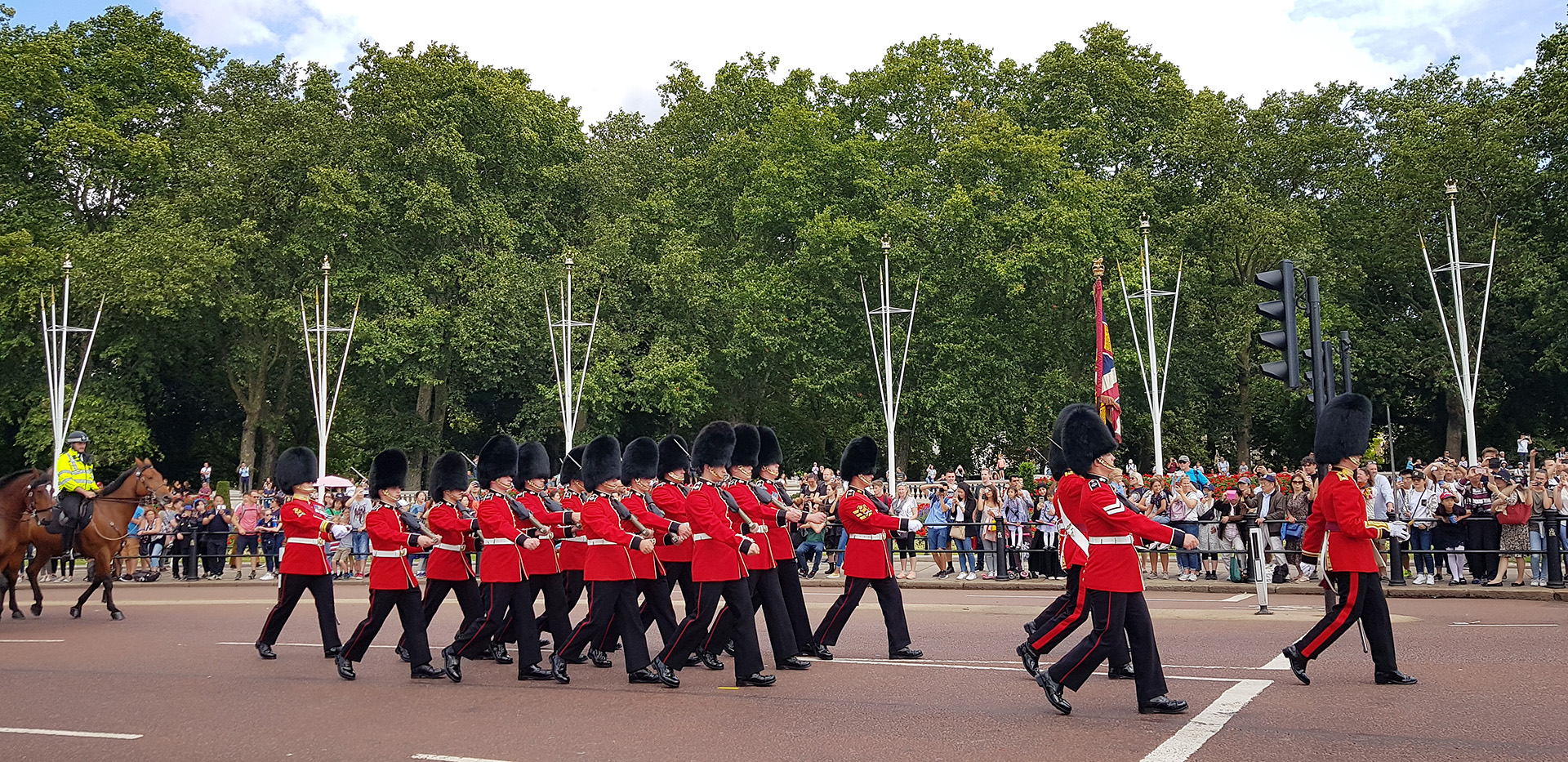 버킹엄궁전 도착. 일주일에 정해진 요일에 하는데, 런던 여행일정중 금요일 이날이 11시에 근위병 교대식이 열리는 날이었다. 교대식을 보러 오는 관광객이 워낙 많아서 최소 30분~1시간 전에 자리잡아야 한다는 소문은 들었으나, 10시 즈음에 도착했을때에는 이미 사진에서처럼 사람이 꽉차 있었다.