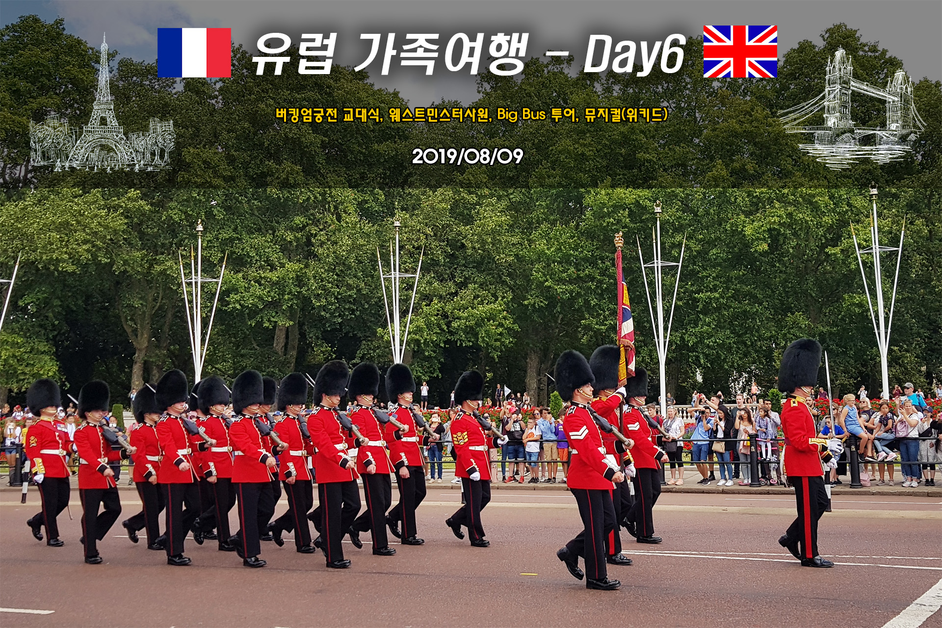 | 8/09 (금) | 런던 | 버킹엄궁전 교대식, 웨스트민스터사원, Big Bus투어, 뮤지컬(위키드) |