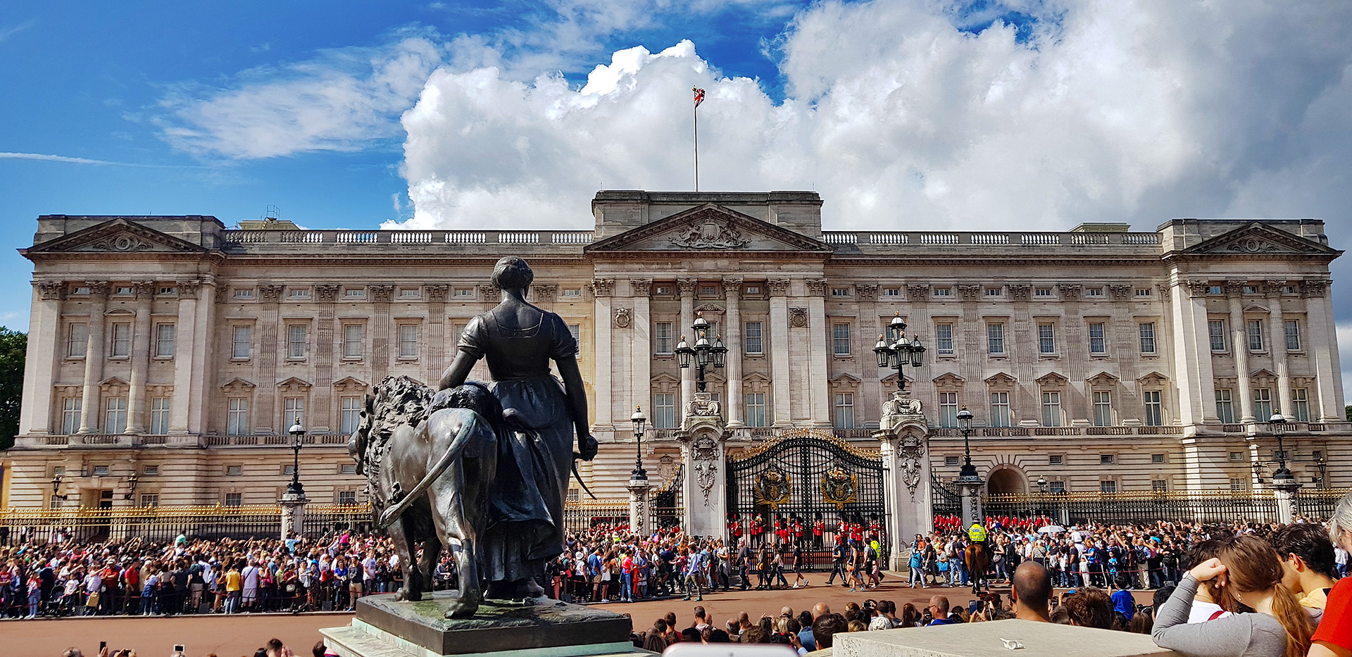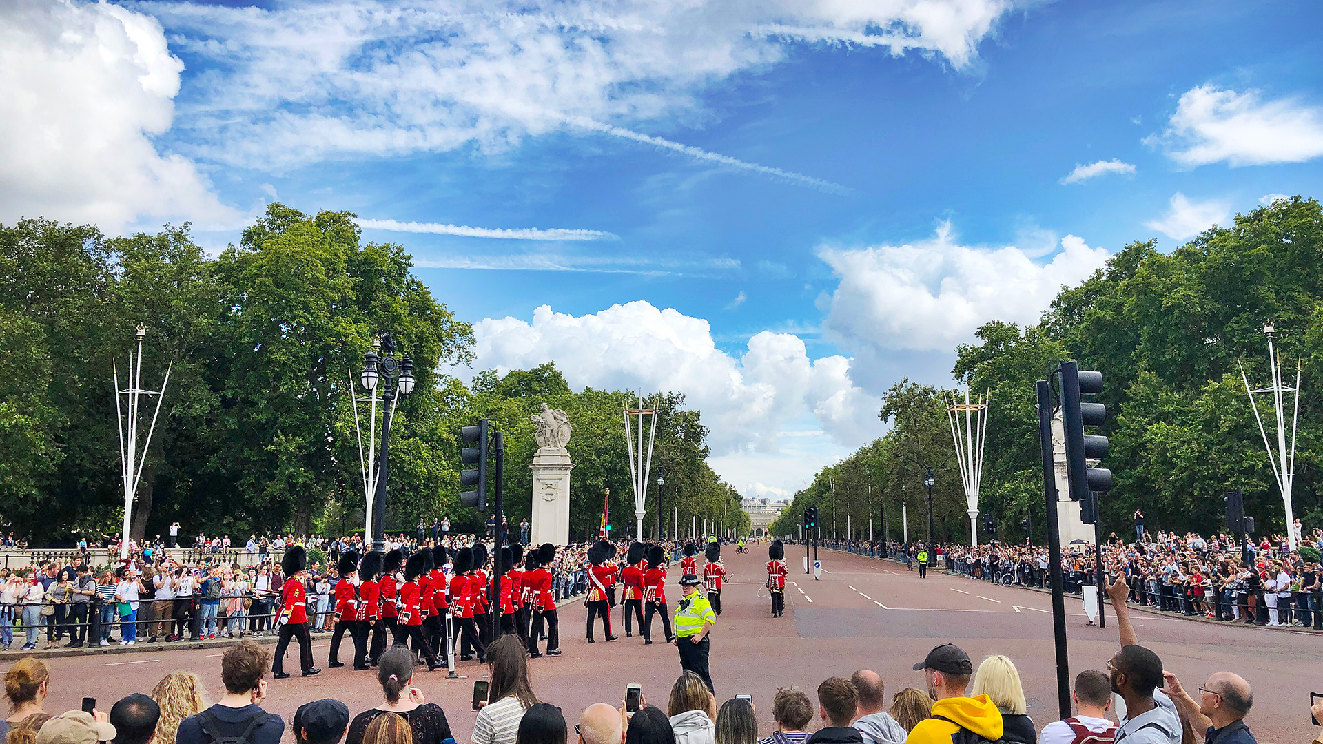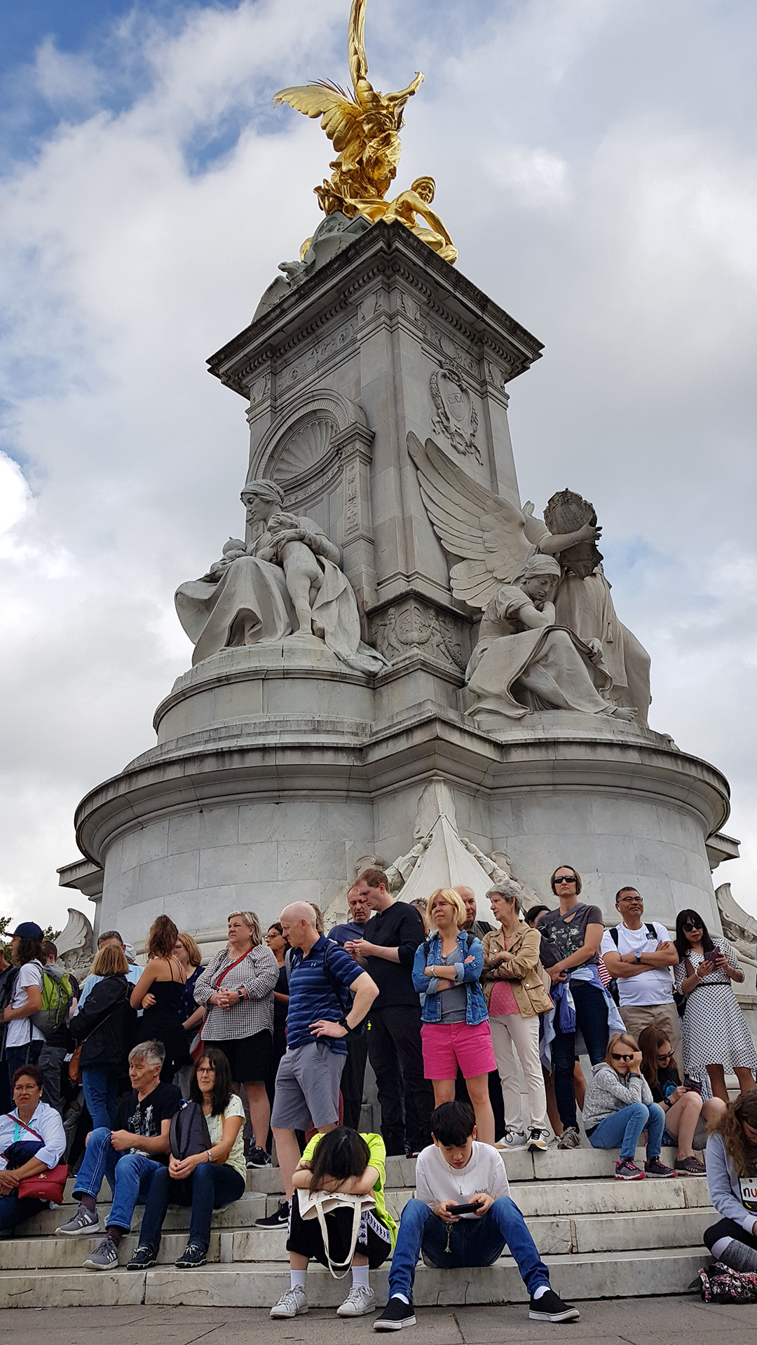 버킹엄궁전 도착. 일주일에 정해진 요일에 하는데, 런던 여행일정중 금요일 이날이 11시에 근위병 교대식이 열리는 날이었다. 교대식을 보러 오는 관광객이 워낙 많아서 최소 30분~1시간 전에 자리잡아야 한다는 소문은 들었으나, 10시 즈음에 도착했을때에는 이미 사진에서처럼 사람이 꽉차 있었다.