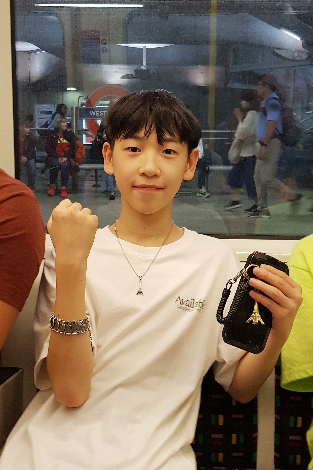 파리에서 산 기념품으로 치장한 연준이.