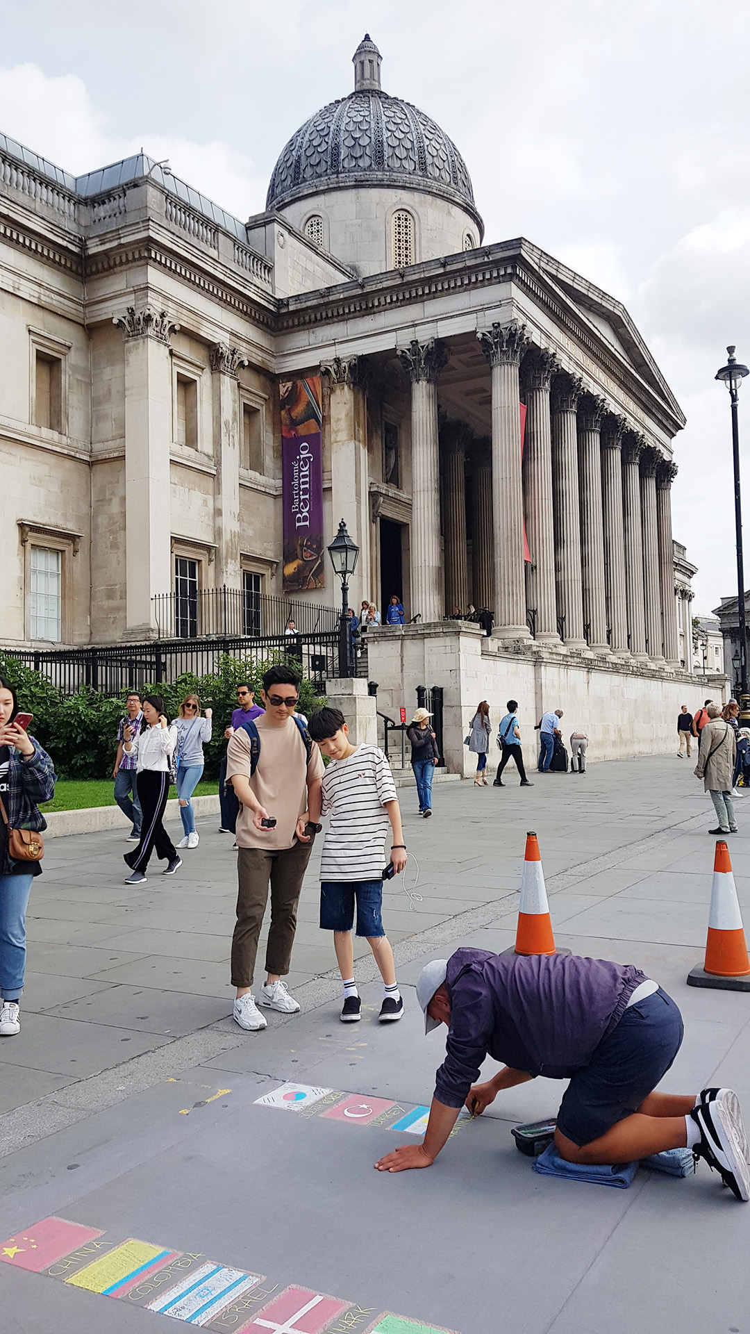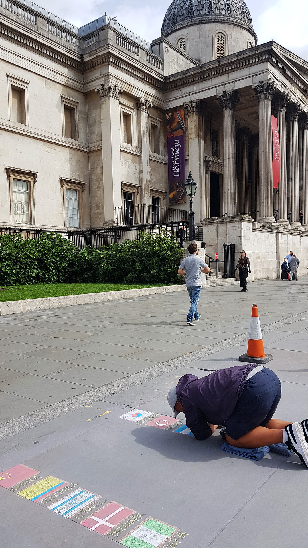 광장 바닥에 분필로 예술을 그리는 아티스트를 발견. 태극기도 보였다.