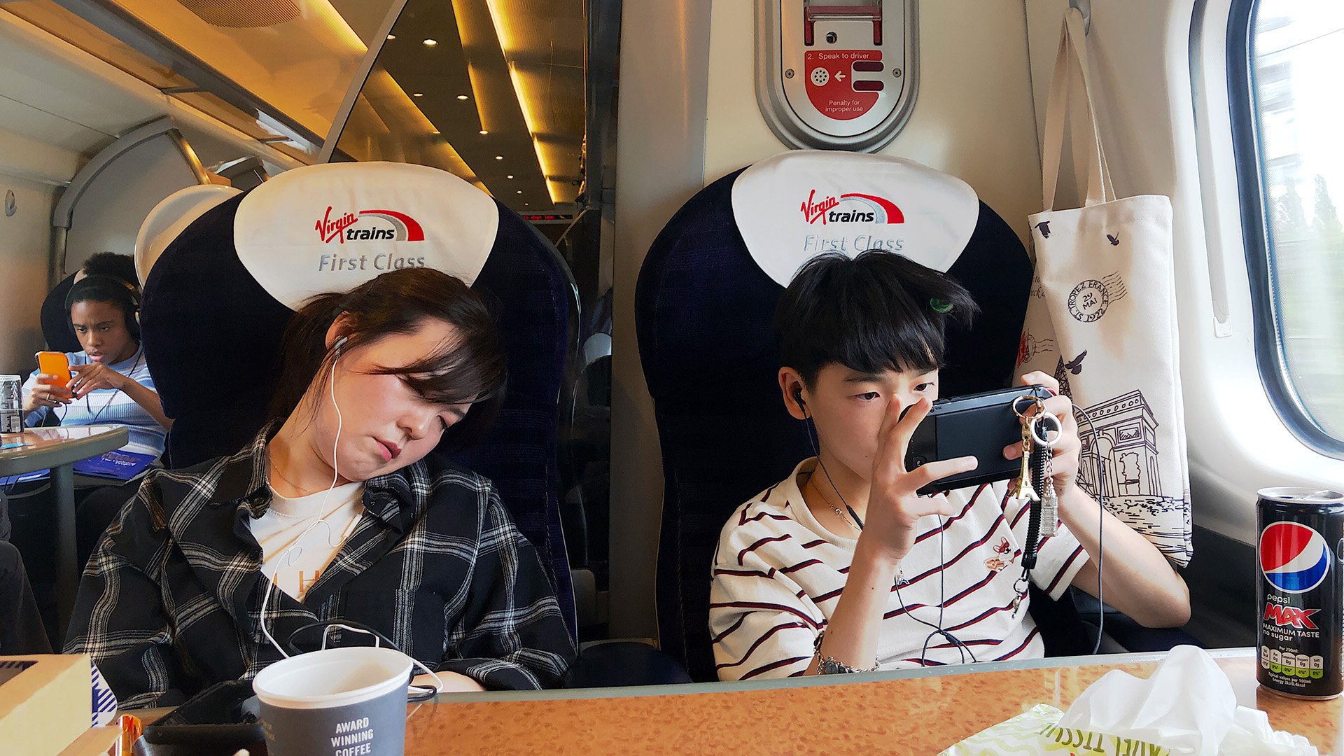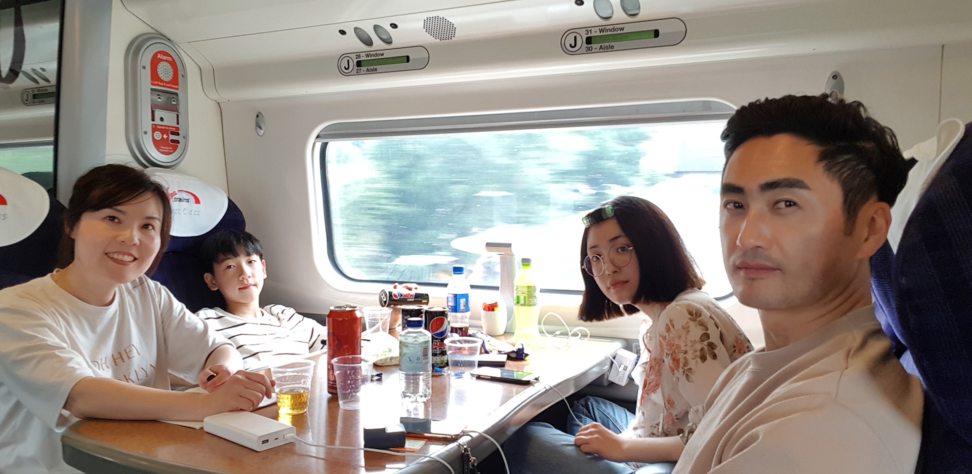 Virgin Train 1등석은 일반석에 비해 자리가 넓고, 음료수 식사, 다과 등이 계속 나온다. 일반석보다 2배의 가격을 지불했지만 5시간이 걸리는 여행이라 무엇보다 가족들이 편하게 이동할수 있어 좋았다.