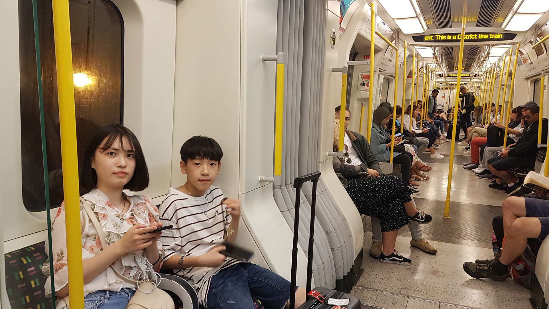 호텔로 다시 돌아와 짐을 찾아, 기차를 타기로 되어 있는 Euston 역으로 우버택시를 탈까 했는데, 우버택시가 근처에 있지 않아 좀 기다려야 했고, 여행일정 내내 아이들에게 너무 편한 여행을 경험하게 하는 것이 맘에 걸렸던 우리 부부는 아이들에게 각자 캐리어를 손수 끌고 전철을 타고 내리도록 하였다.