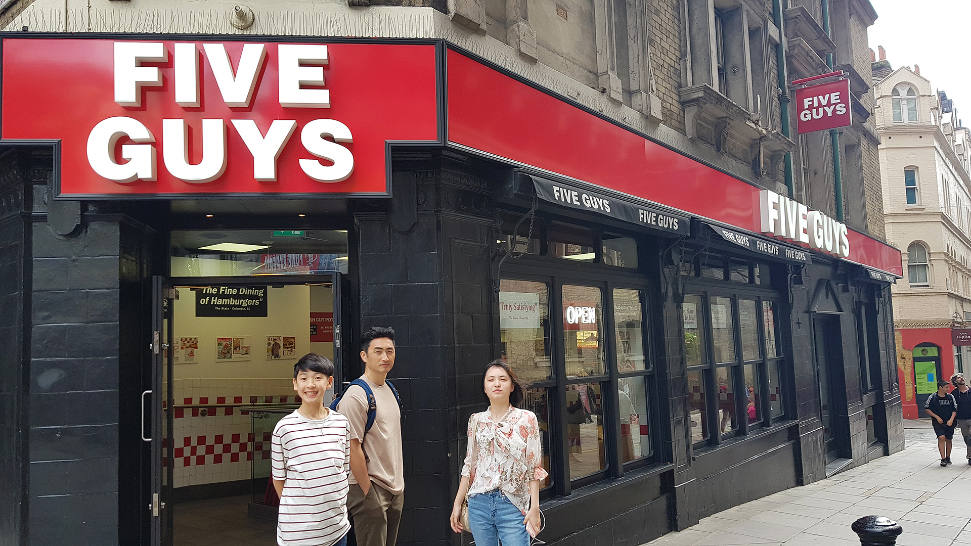 버거를 먹느라 표정이 이상하지만, 이 Five Guys 는 연준이 친구들이 영국 가면 꼭 가서 햄버거 한번 먹으라고 했던 곳이었고 런던일대를 다니면서 이곳 저곳에서 많이 봤던 체인 버거집이었다.... 맛은 Shake Shack 버거같은 느낌으로 패티가 제법 맛있었다. 맥도날드보다는 훨씬 맛있음.