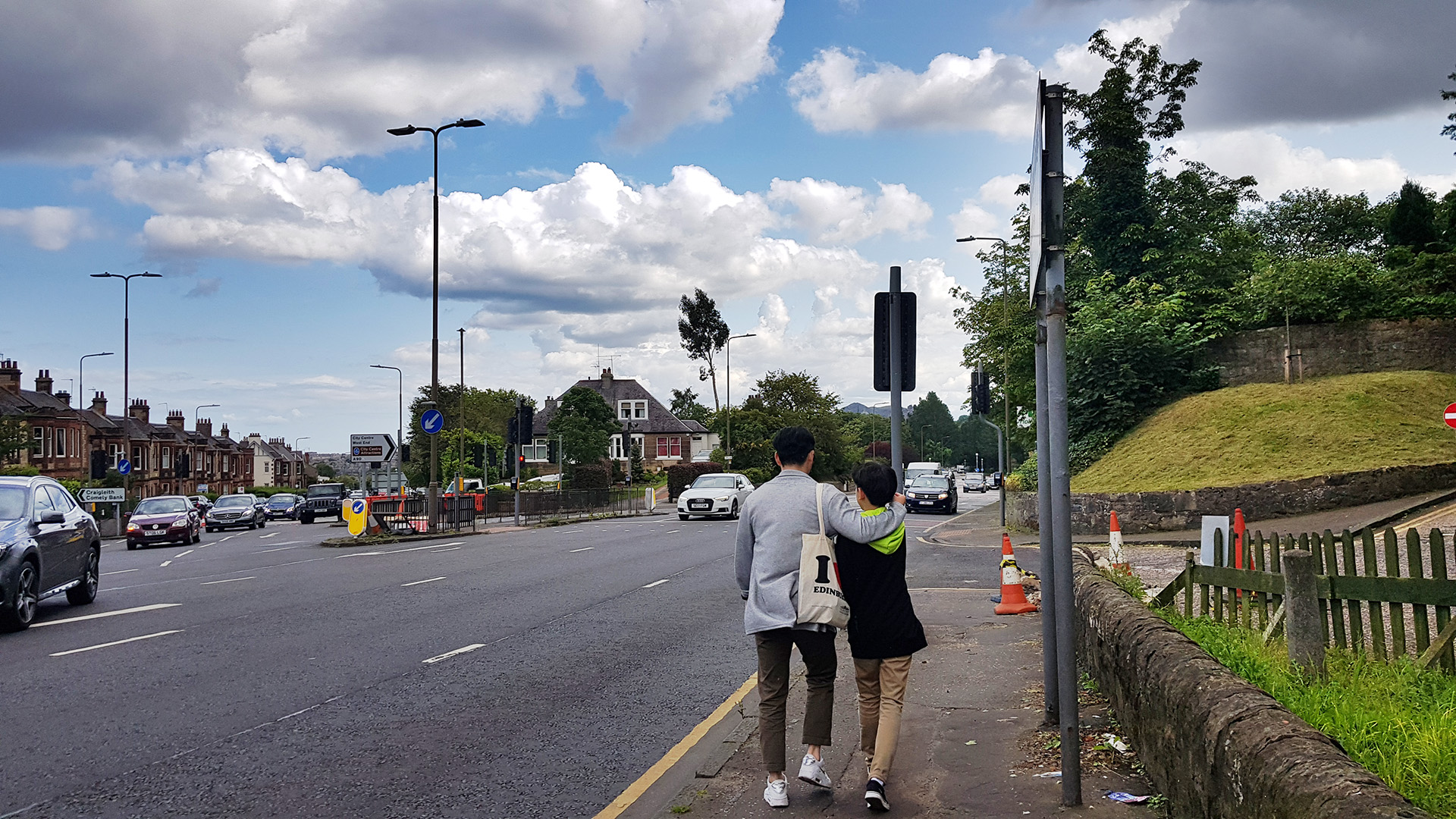 호텔앞에서 시내로 가는 버스를 기다리는 중. 호텔잡을때에는 몰랐는데, 이 곳 정류장을 다니는 41번 버스가 Royal Mile 에 10여분만에 내려다 주는 터라 잘 이용했다.
