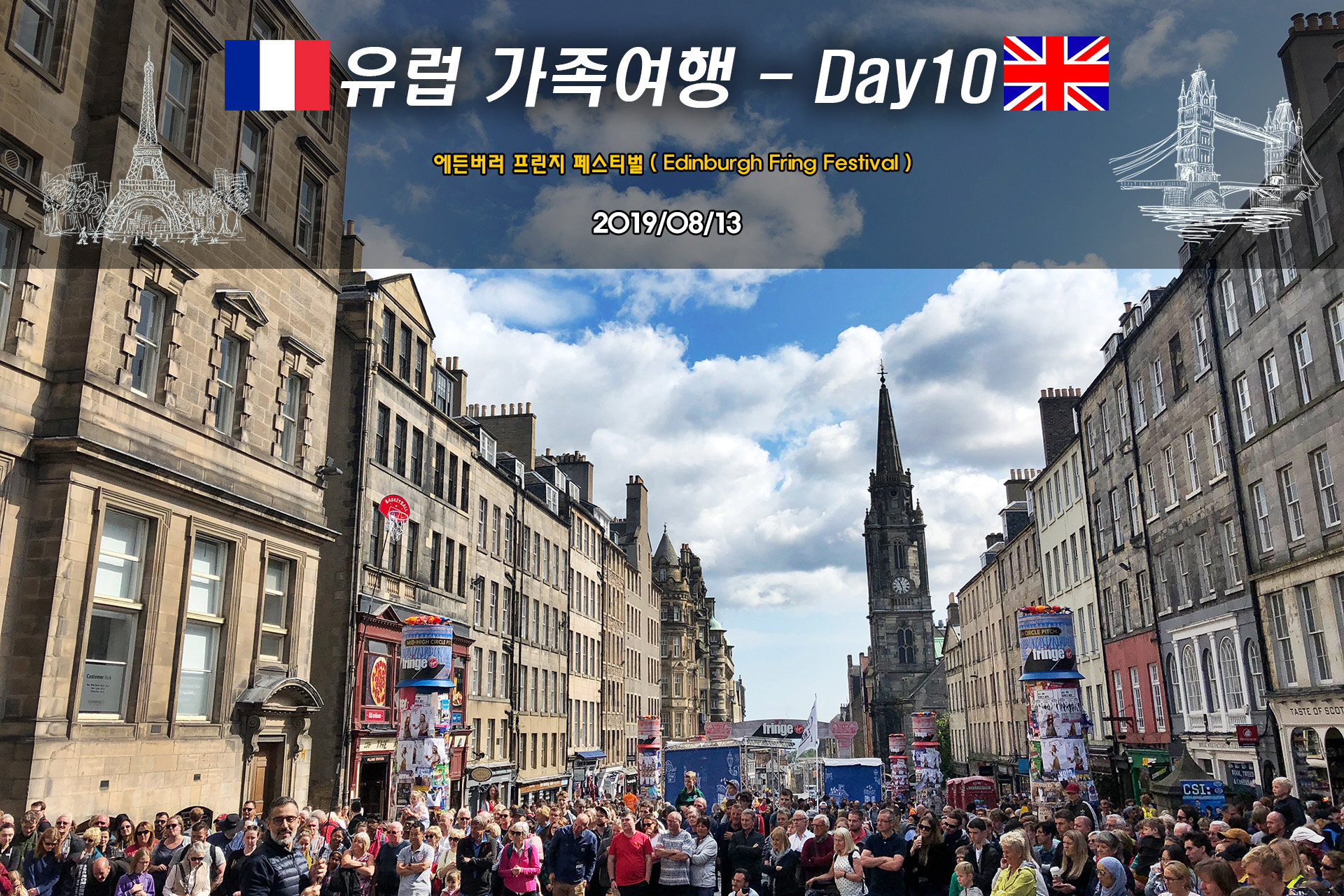 19년 8월 4일부터 14일까지 다녀온 유럽여행 중 에든버러,파리편 (3부, 마지막) 입니다 - Day8 : 런던→ 에든버러 - Day9 : (에든버러) 스캇기념비, 에든버러캐슬, 프린지페스티벌, 칼튼힐 - Day10 : (에든..