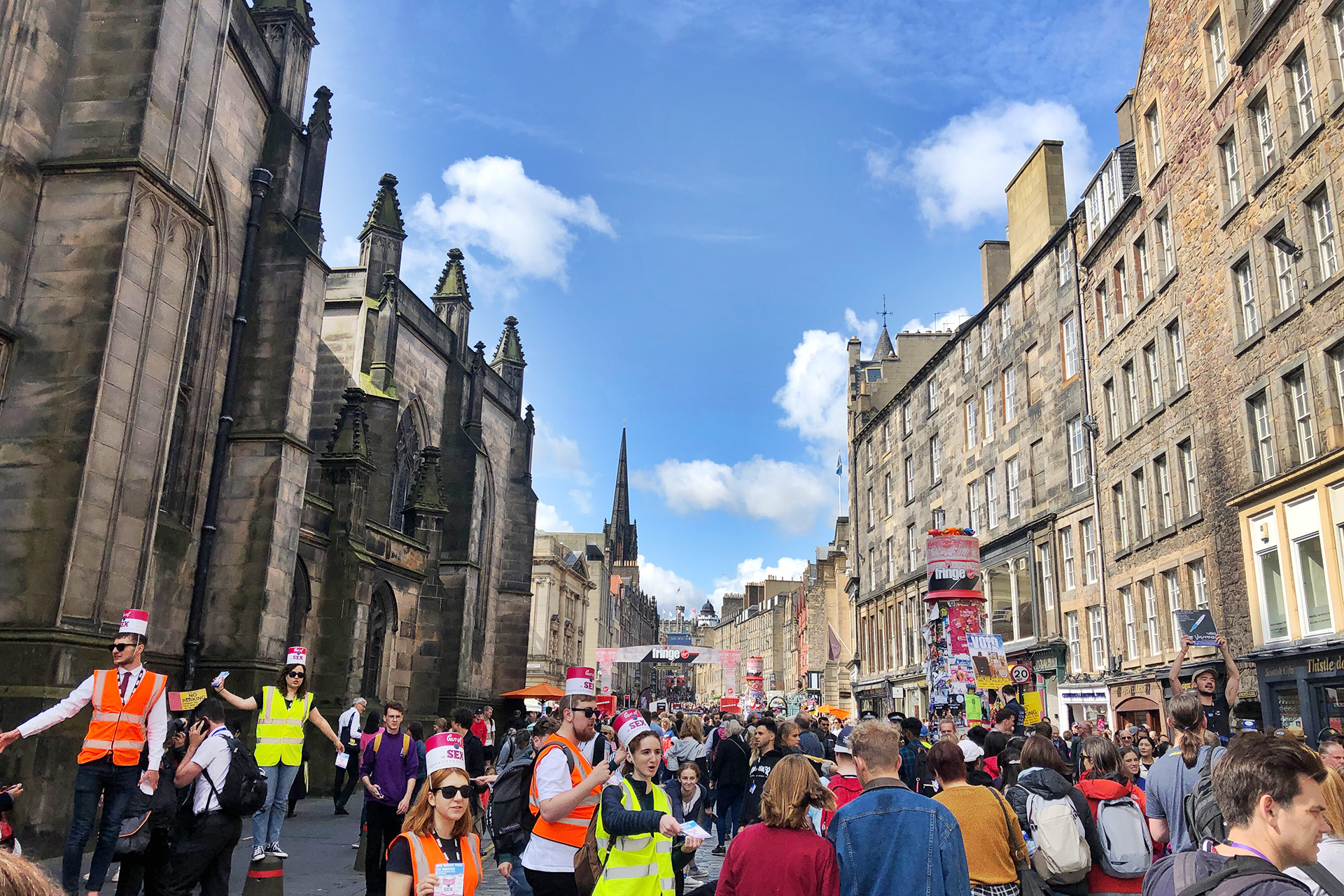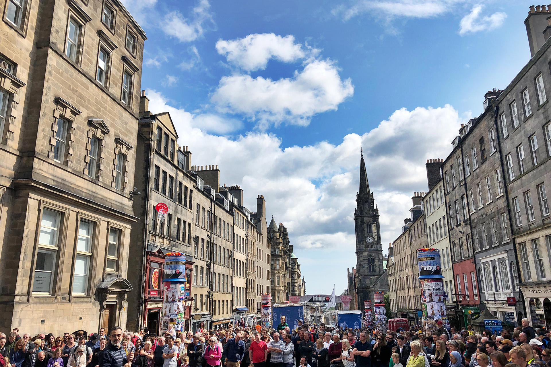 하늘도 이쁘고, 거리도 이쁘고, 공연을 즐기는 사람들도 많고... 에든버러 참 잘 왔다는 생각이 들었다.