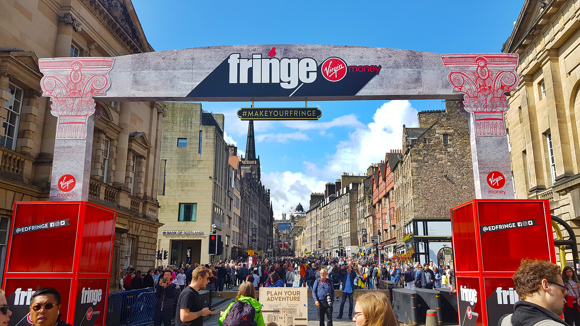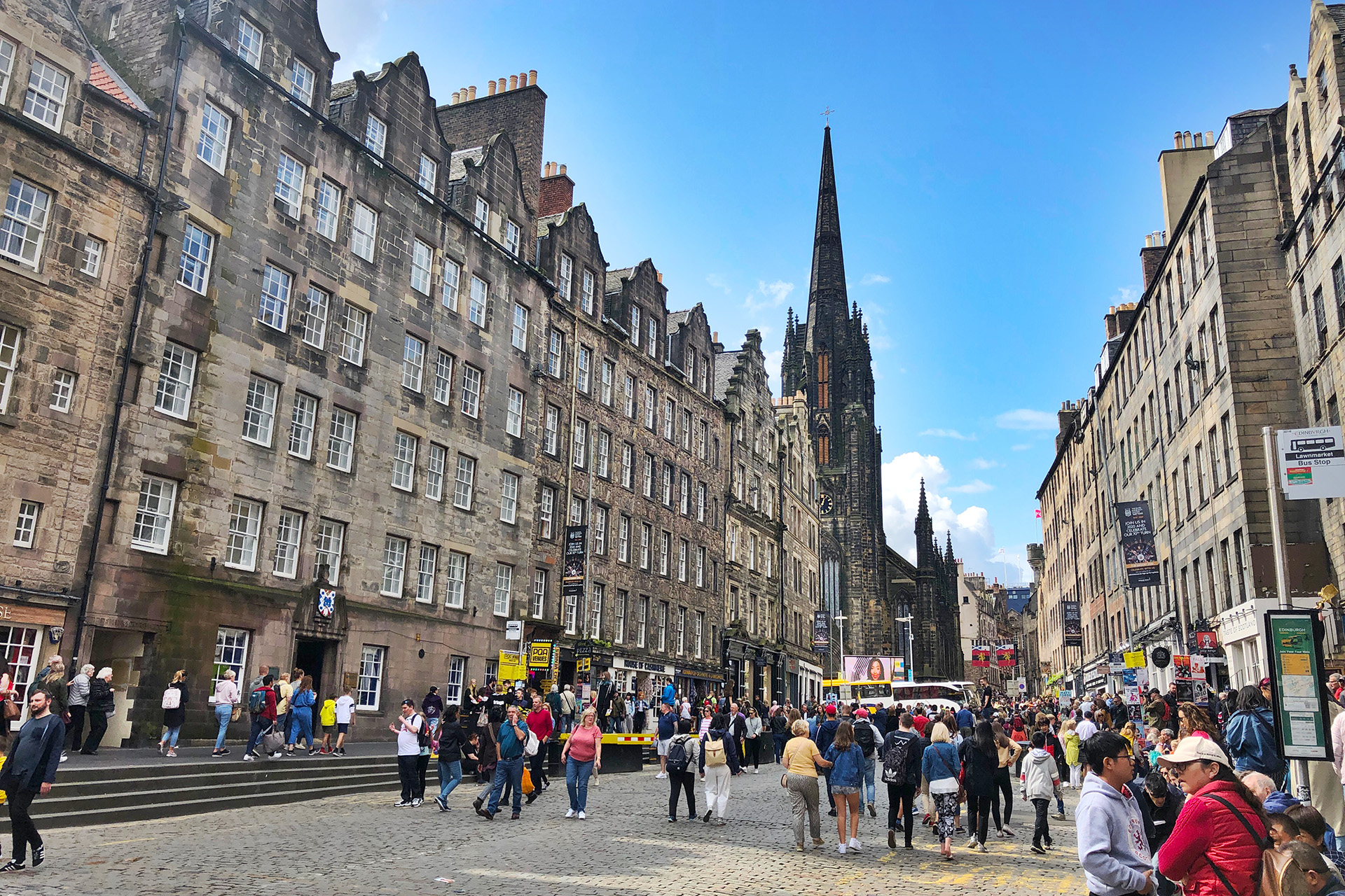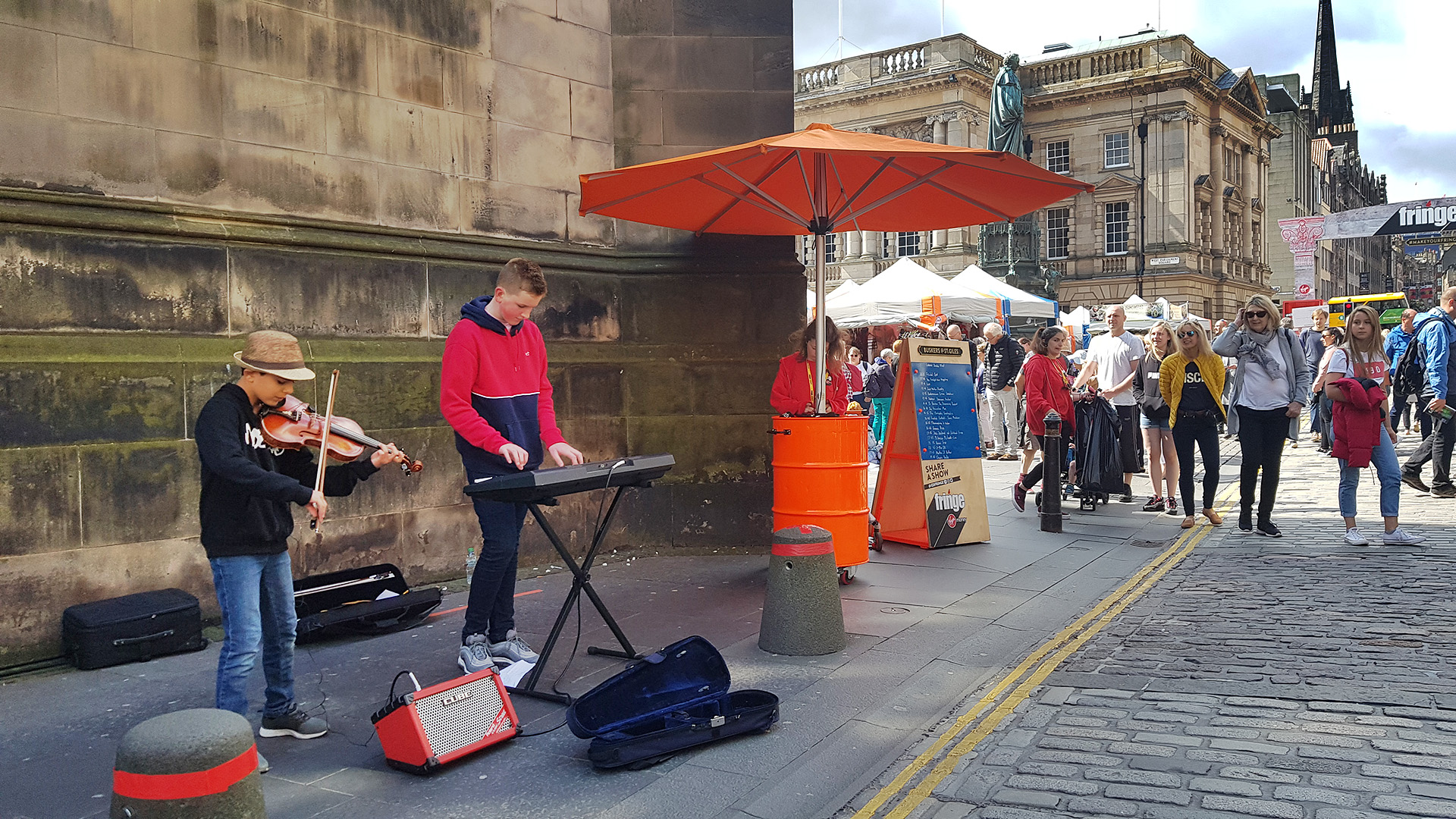 하늘도 이쁘고, 거리도 이쁘고, 공연을 즐기는 사람들도 많고... 에든버러 참 잘 왔다는 생각이 들었다.