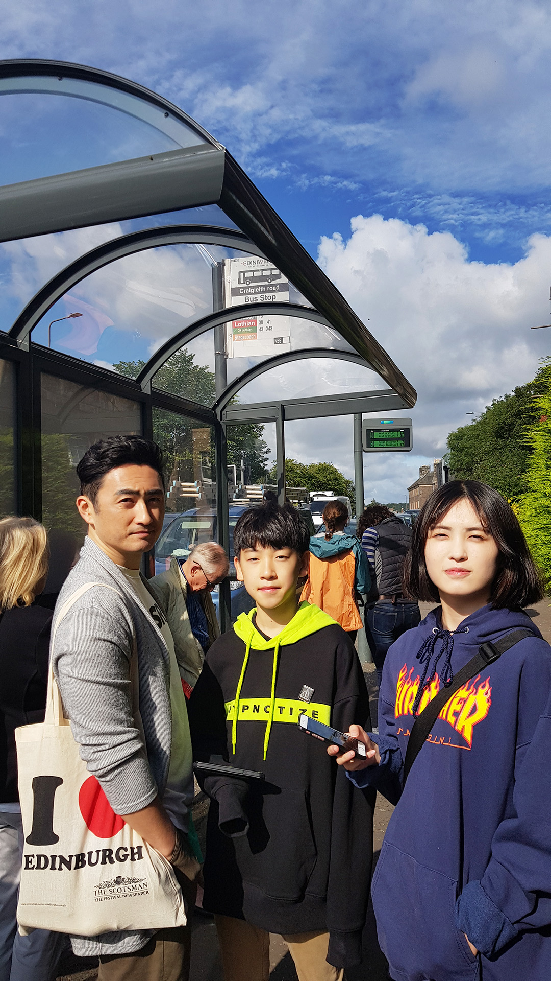호텔앞에서 시내로 가는 버스를 기다리는 중. 호텔잡을때에는 몰랐는데, 이 곳 정류장을 다니는 41번 버스가 Royal Mile 에 10여분만에 내려다 주는 터라 잘 이용했다.