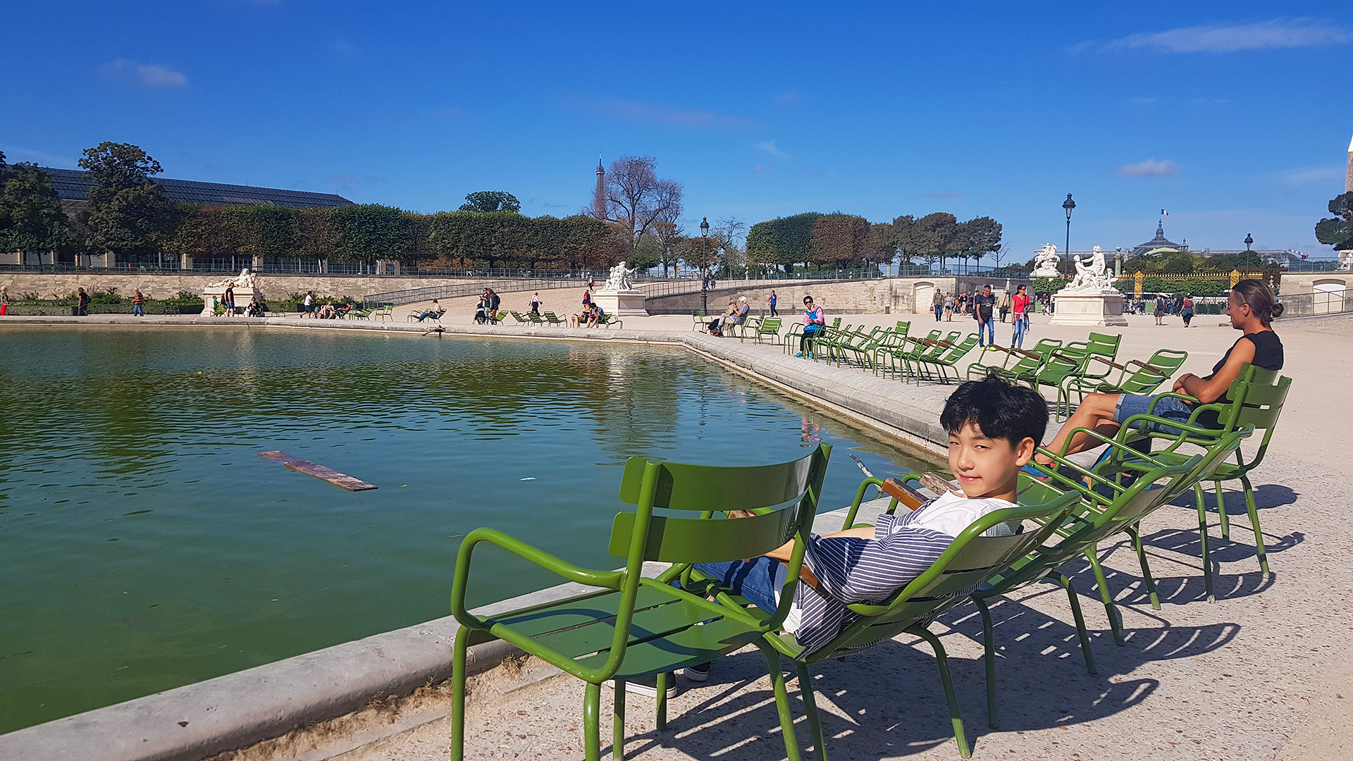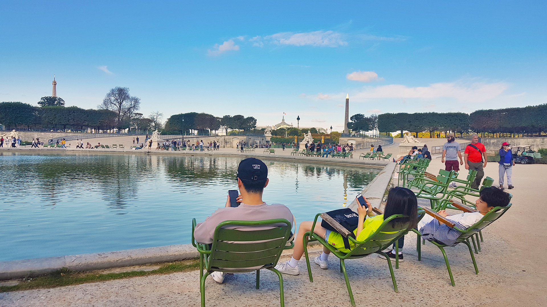 콩코르드 광장에 10여분 정도 머무르면서 사진좀 찍다가 바로 옆의 튈르리정원으로 이동했다. 예전 파리여행땐 여기 와서 흐린 날씨속에 에스프레소를 사서 마셨던 기억이 있는데, 같은 장소임에도 2007년 당시 흐린 날씨에 왔던 공원의 모습과, 이 날의 맑은 날씨의 튈르리 정원은 완전히 다른 느낌이었다.