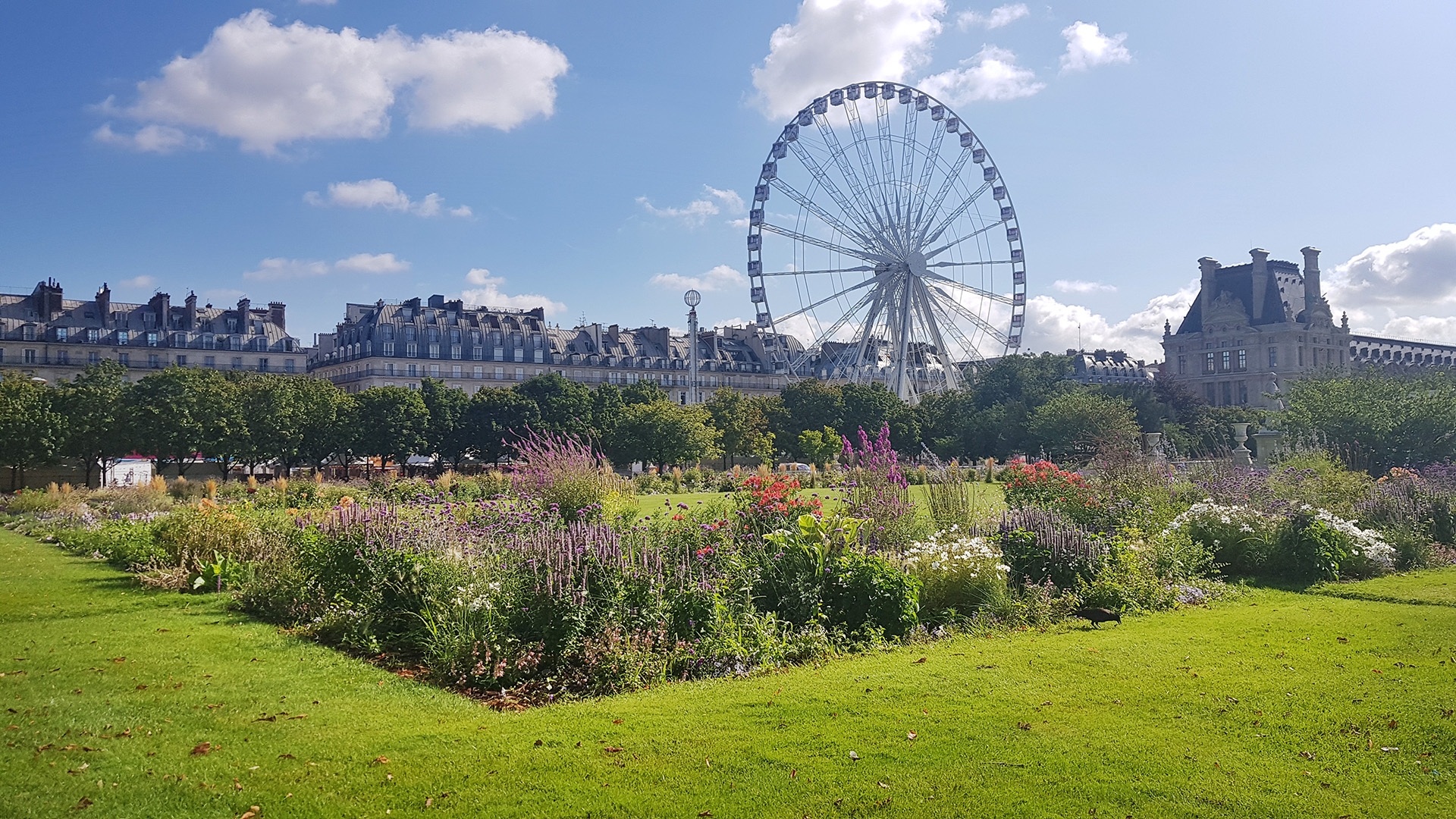 에펠탑과 콩코르드광장의 오벨리스크가 바라오보이는 튈르리 정원.