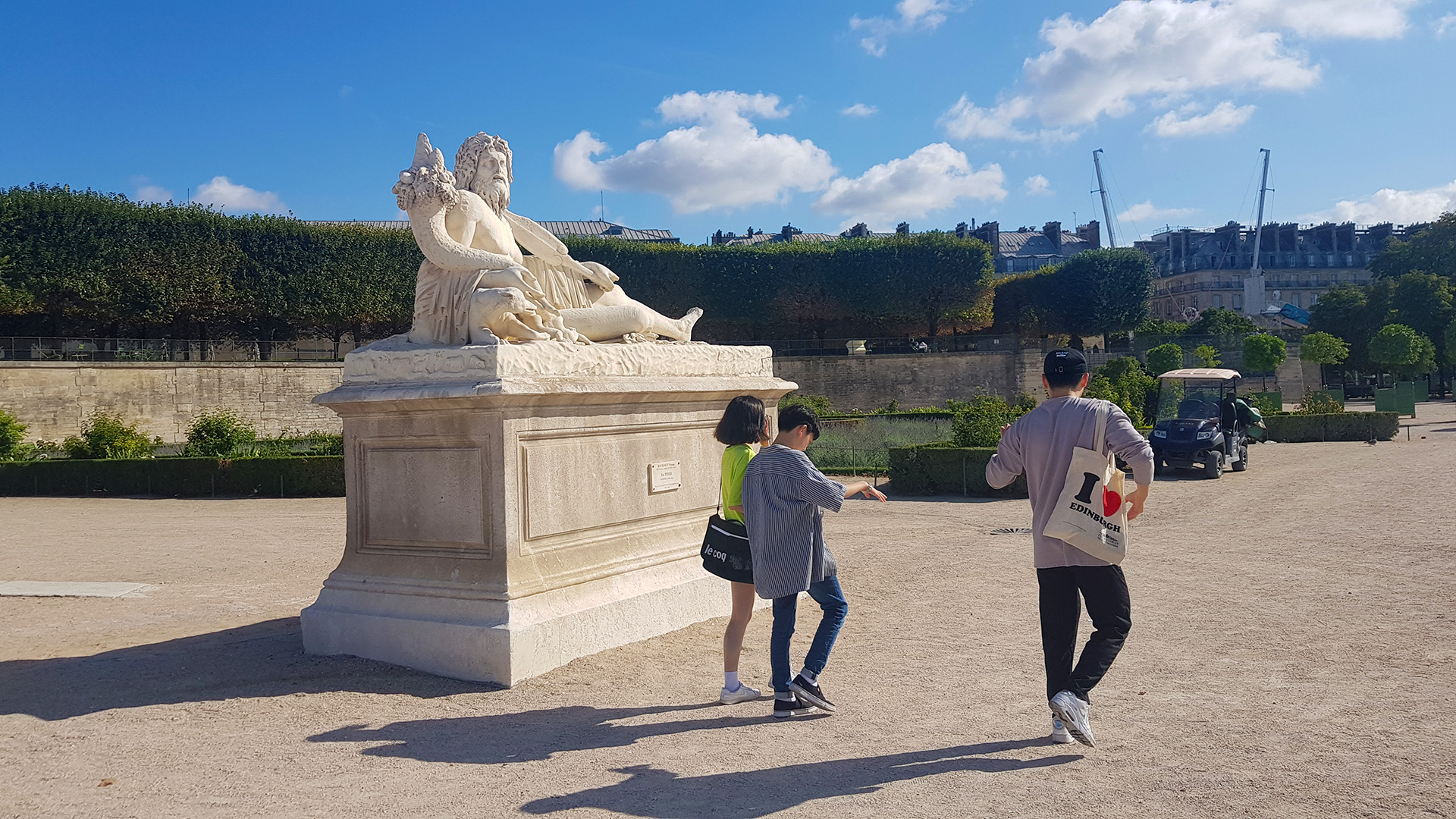 콩코르드 광장에 10여분 정도 머무르면서 사진좀 찍다가 바로 옆의 튈르리정원으로 이동했다. 예전 파리여행땐 여기 와서 흐린 날씨속에 에스프레소를 사서 마셨던 기억이 있는데, 같은 장소임에도 2007년 당시 흐린 날씨에 왔던 공원의 모습과, 이 날의 맑은 날씨의 튈르리 정원은 완전히 다른 느낌이었다.