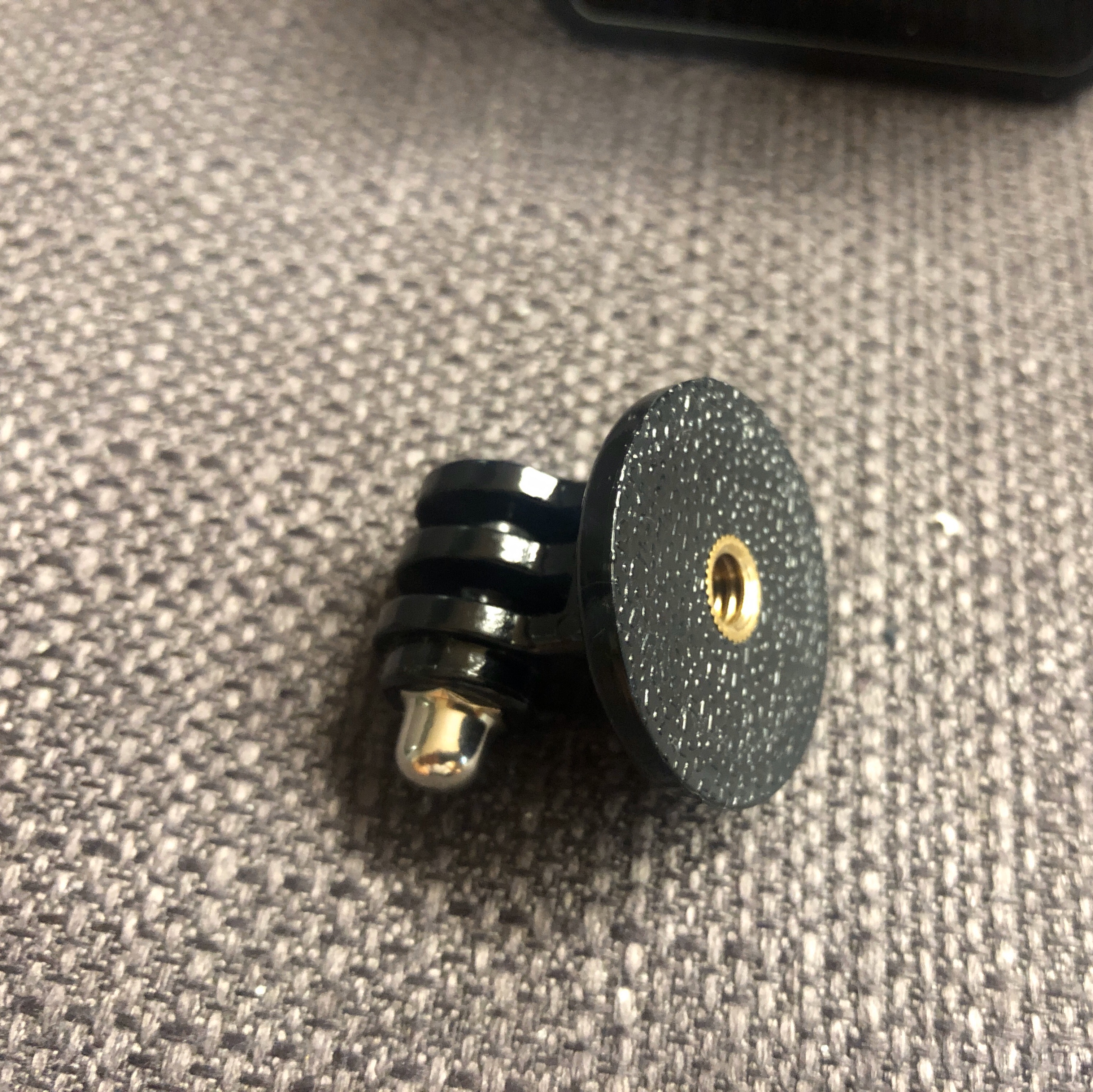 일반적인 카메라를 장착 가능한 삼각대 볼트. 고프로 연결을 위해선 추가어댑터가 하나 필요하다.
