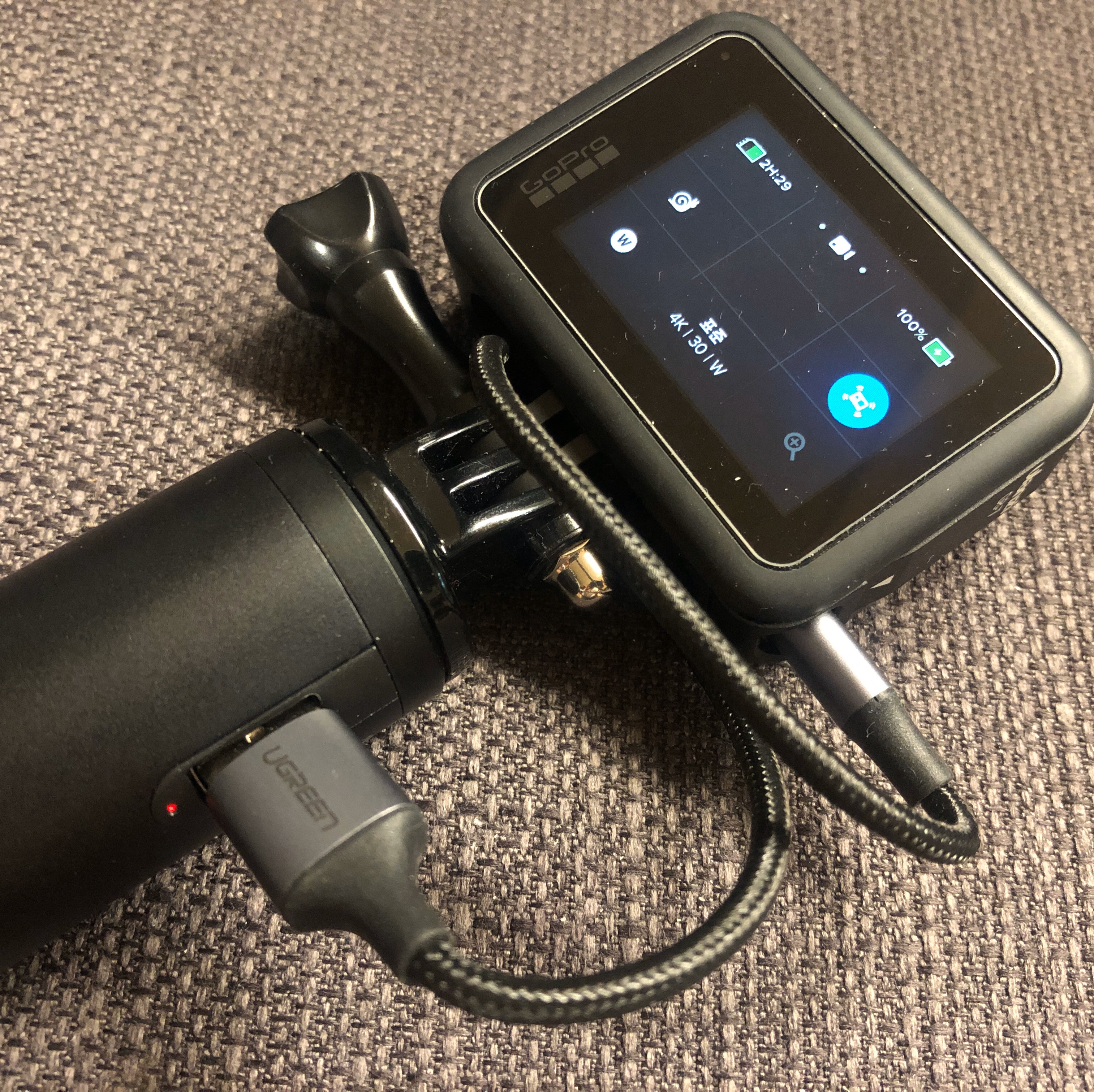 고프로 충전시에는 배터리그립에서 빨간불이 표시된다. 10cm 가량의 짧은 USB-C 케이블 하나면 배터리 걱정 안하고 몇시간동안 촬영이 가능해 보인다.