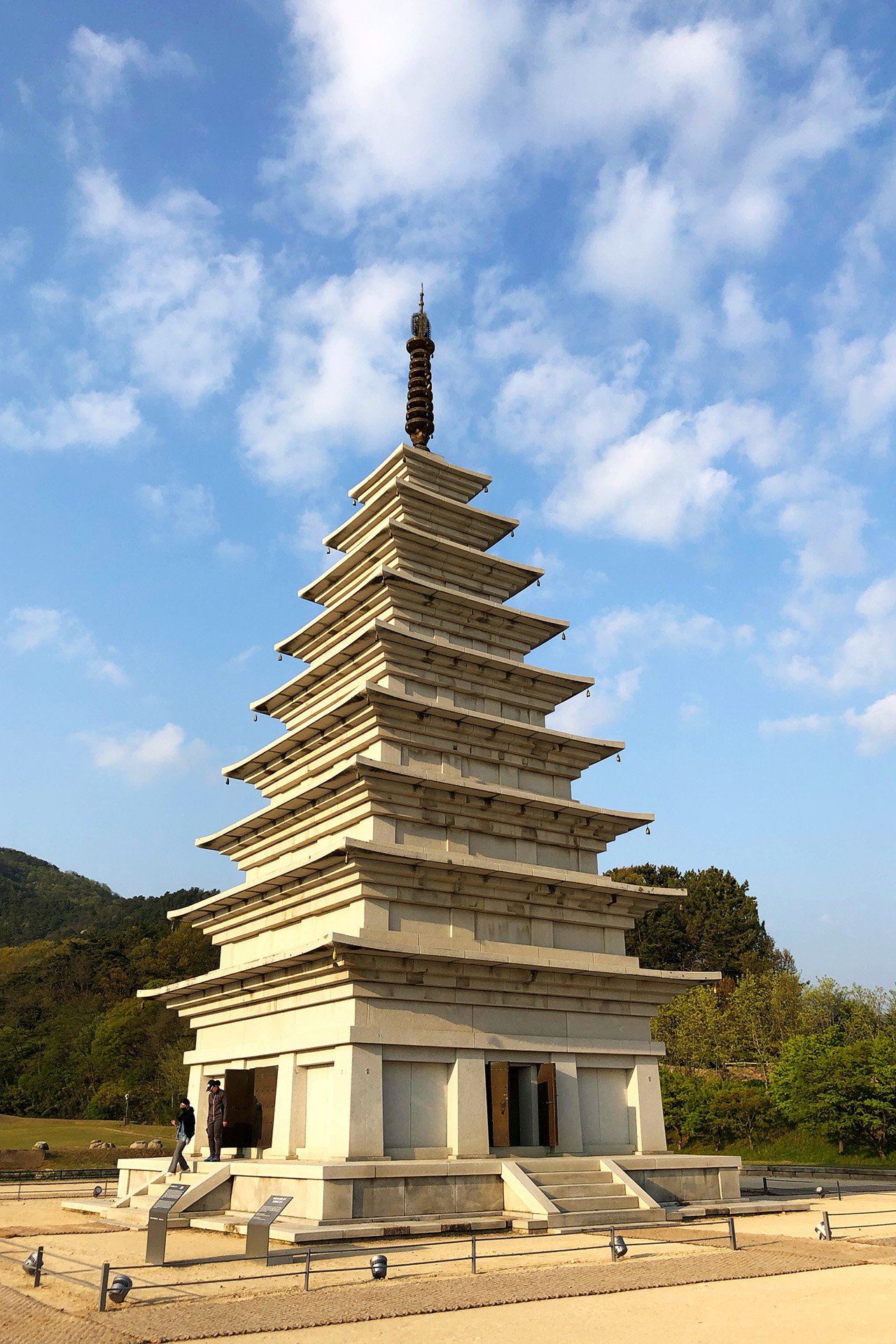 이 석탑이 두개가 있는데, 동쪽에 보이는 온전한 탑은 완전히 사라진 상태에서 노태우 정부 당시 졸속으로 복원된 건물. 내부 관람이 가능한 모조품..