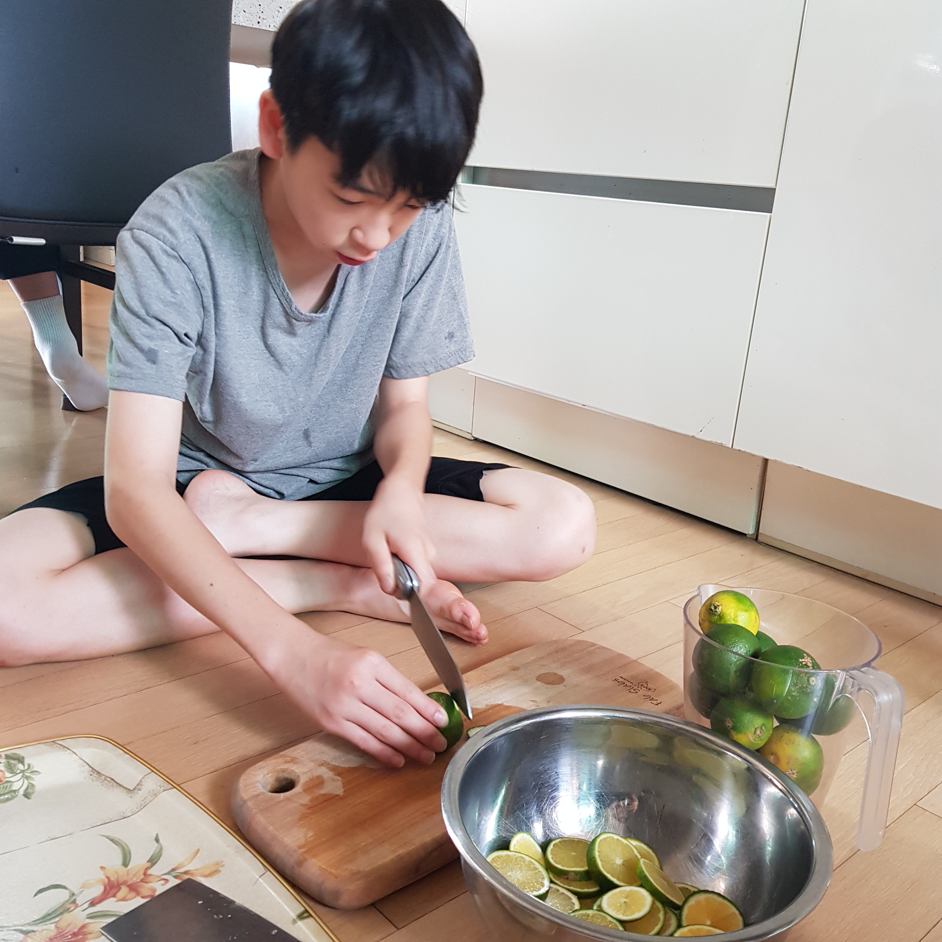 혼자 자르기에 너무 많아서 아드님 도움을 받았다. 엄마의 SOS에 늘 잘 응답해주는 연준이.