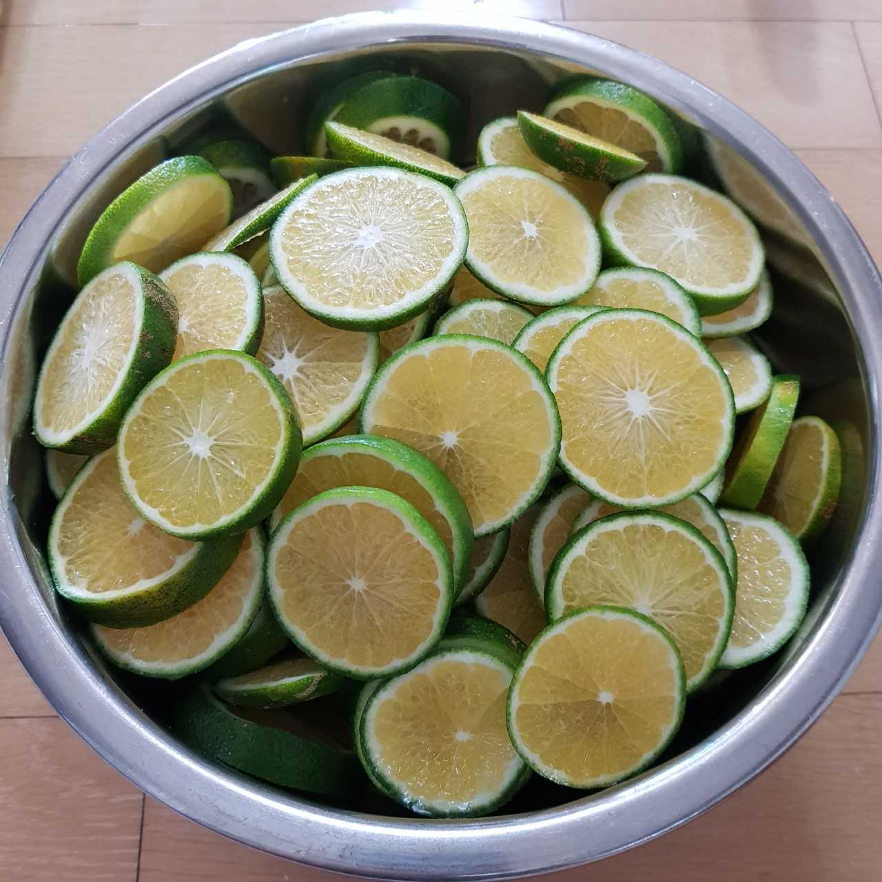5kg. 양이 정말 많아서 직장에 가져가 동료들과 나눠먹고, 엄마도 드렸다. 청귤은 8월 한달정도만 수확을 하는 귀한 과일이란다. 비타민C와 항산화물질이 감귤의 2개나 된다. 까먹을까 싶어서 올해 8월 달력에도 "청귤구입"을 별도 메모해놓았다. 흰설탕과 함께....