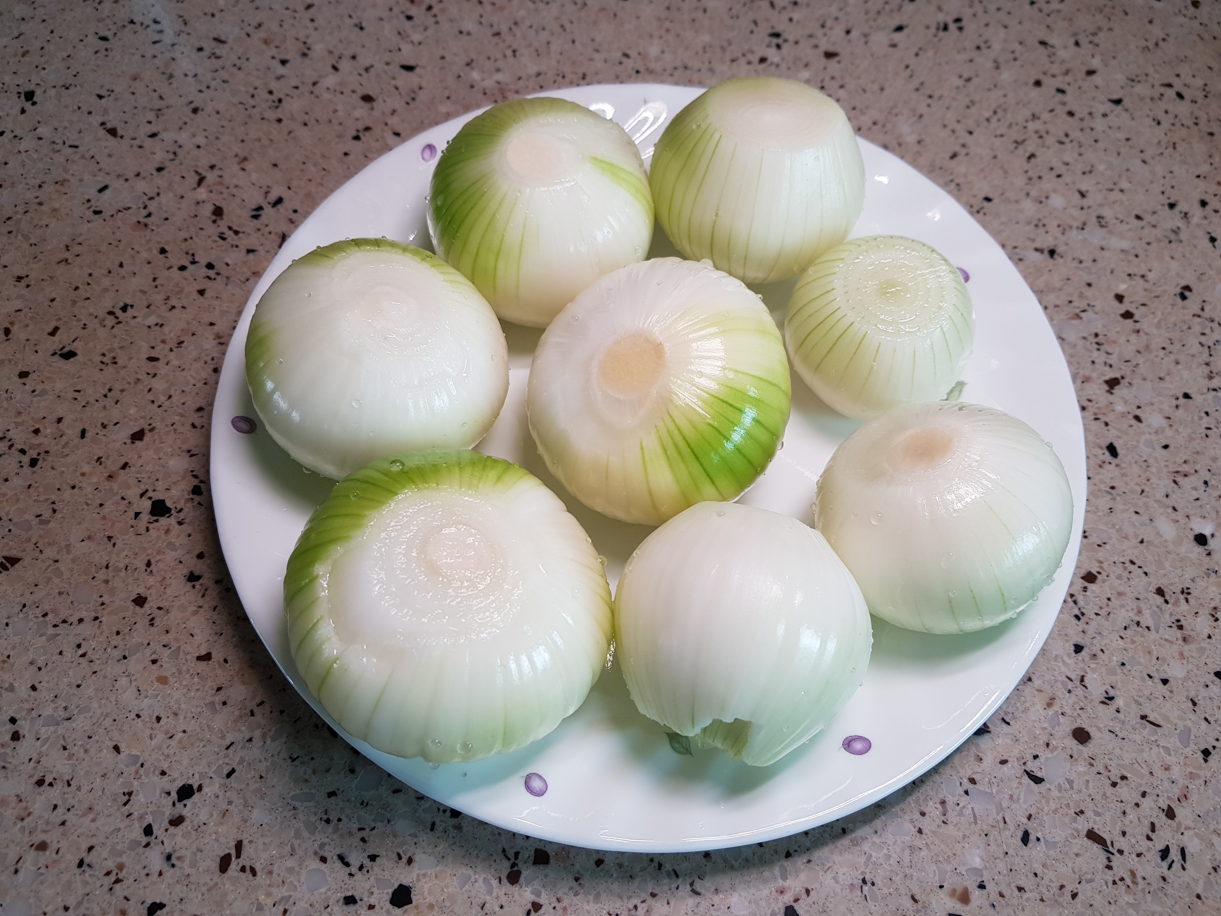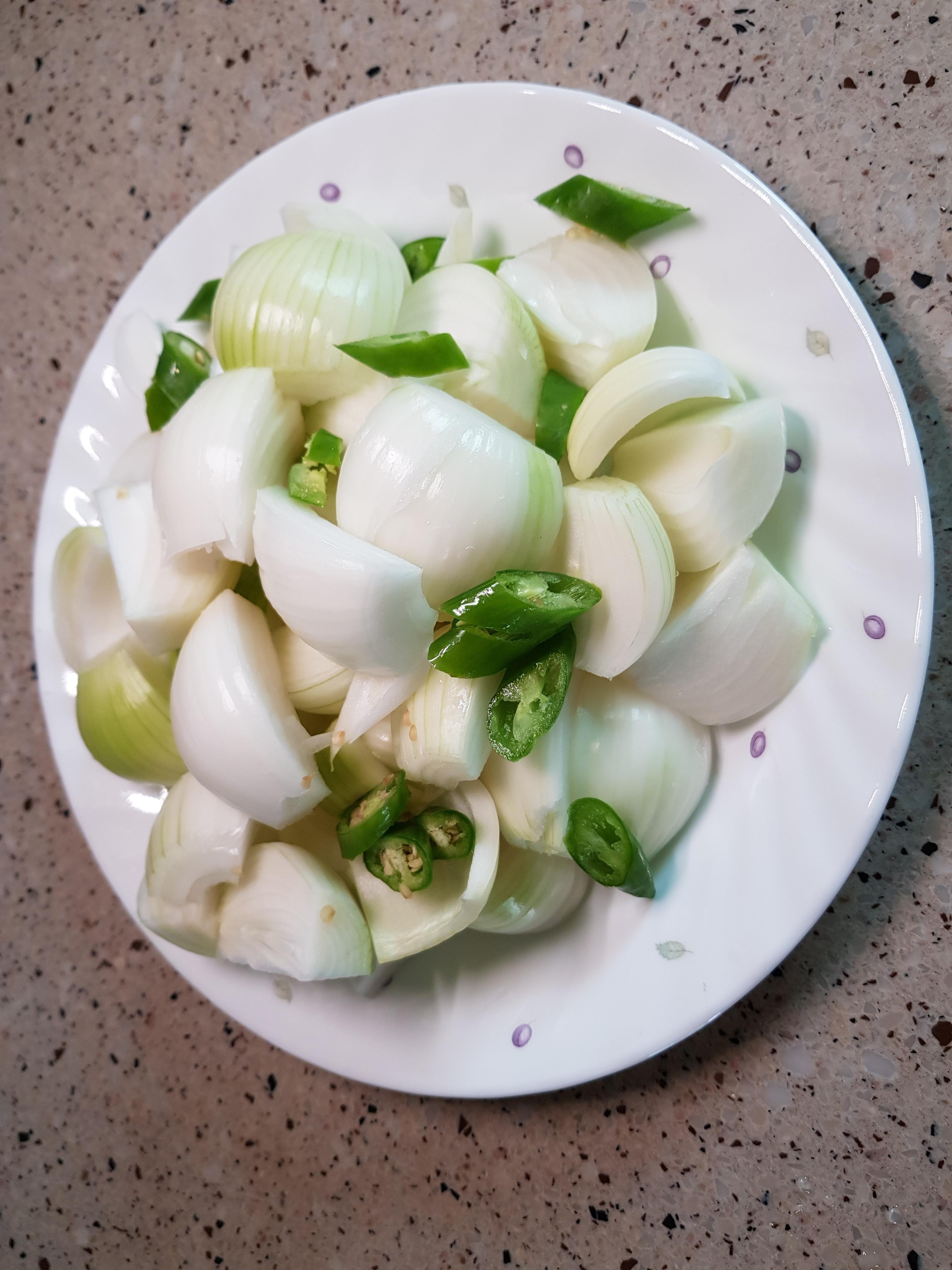 양파를 깨끗이 씻어 1개를 각각 4등분했다. 지난번에 너무 잘게 잘라 먹기 불편했던 기억이 있어서....