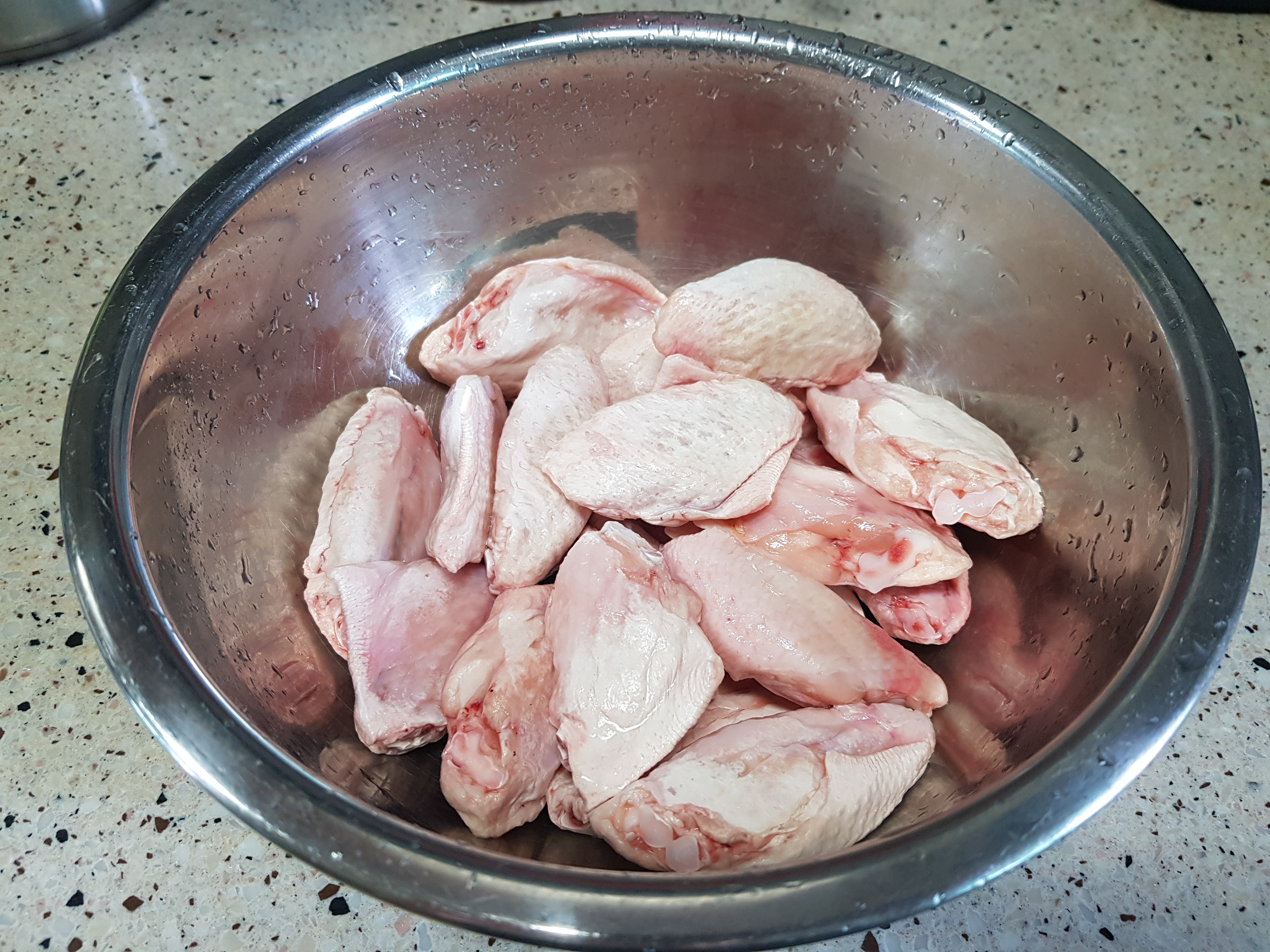 에어프라이어에 한번에 요리하기가 닭날개 20개가 딱 적당한 것 같다. 먼저 닭날개를 물에 씻는다.