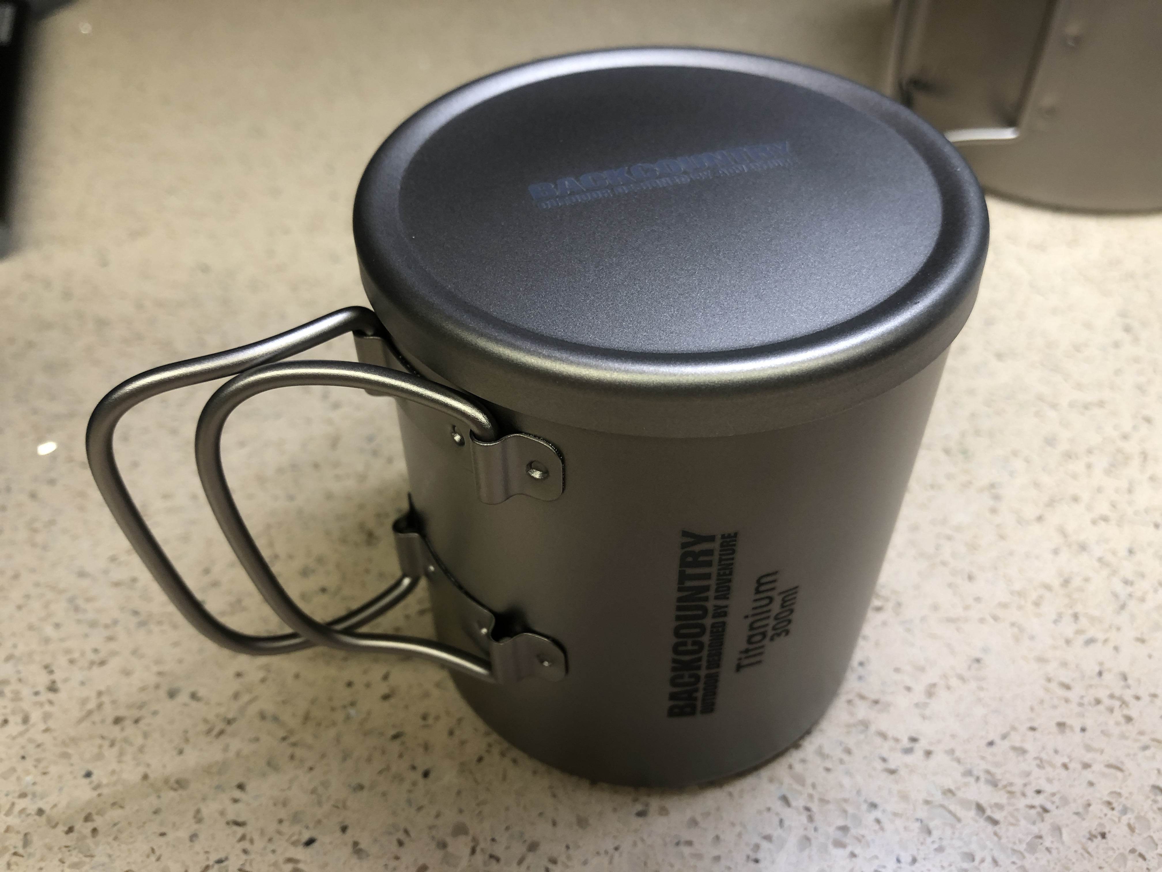 보통 티탄 머그컵에는 싱글월과 더블월이 있는데, 싱글월은 얇은 소재로 가벼운게 장점이나 열이 금방 식어서 커피를 마시는 머그컵 만큼은 더블월이 좋겠다 생각해서 산 컵. 그렇다고 많이 두꺼운건 아닌것 같다.
