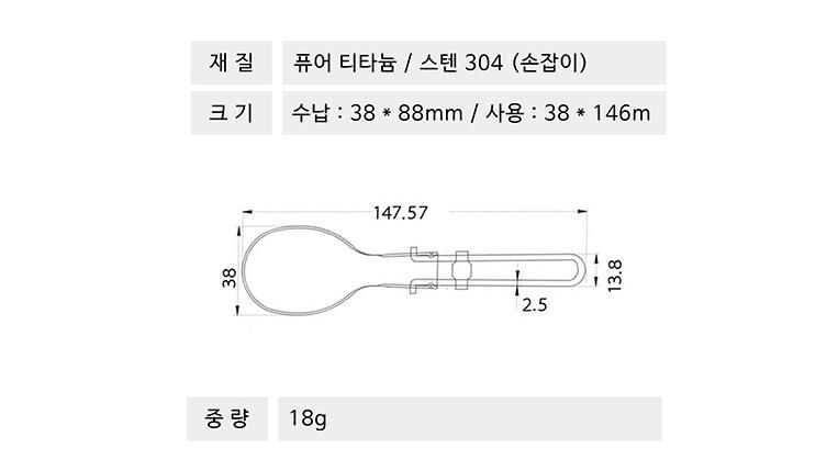 티타늄 수저. 폴딩 방식이라 조그만 코펠 안에 넣어두고 좋아서 구입한 물건.