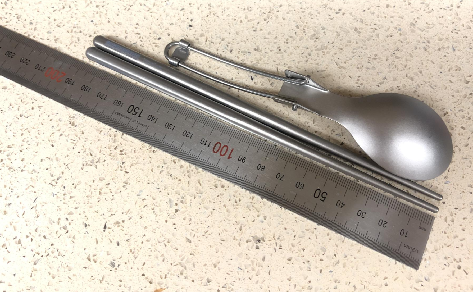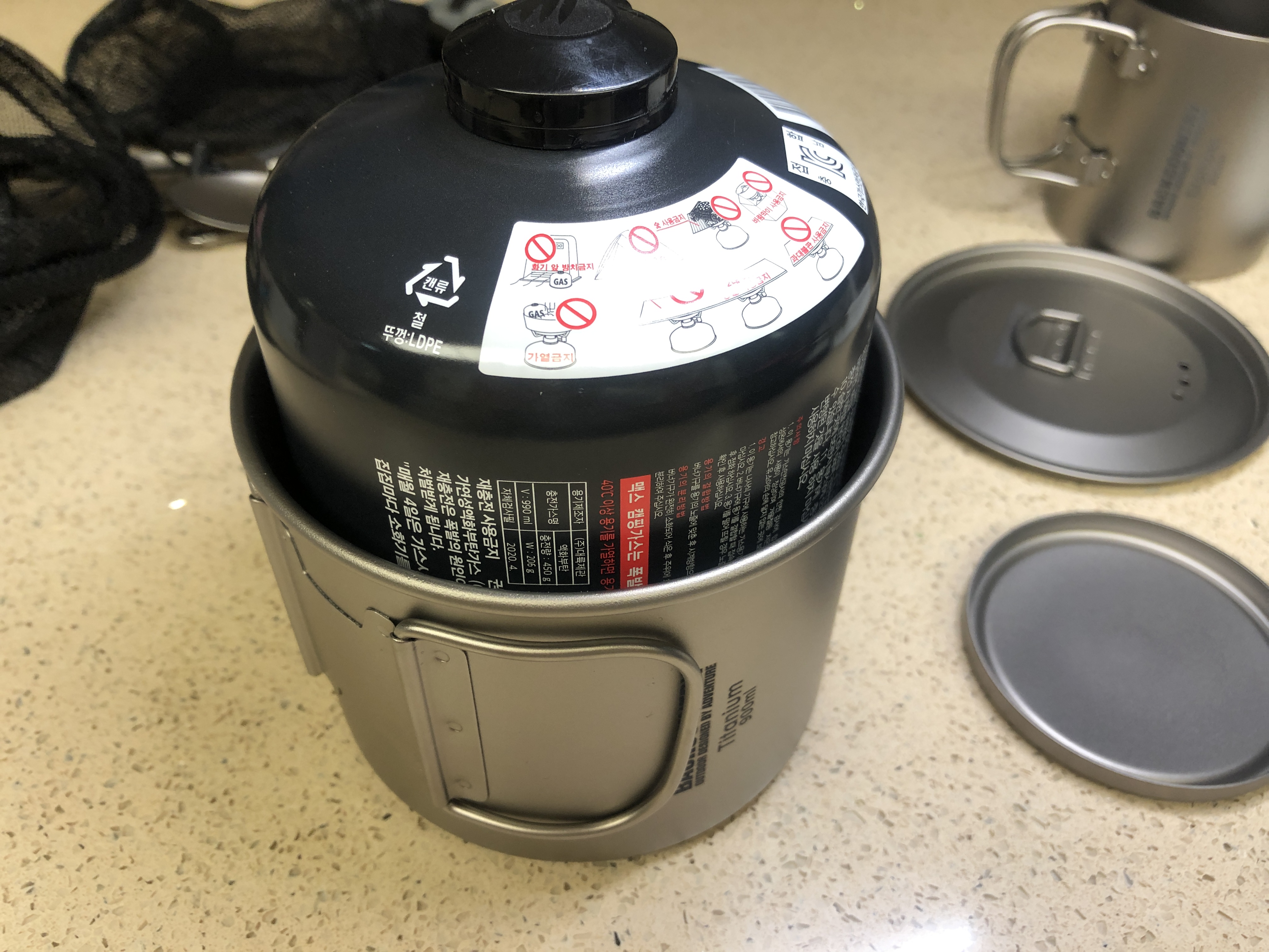 나무젓가락을 써도 될것 같았으나, 기분상 젓가락도 티타늄으로.