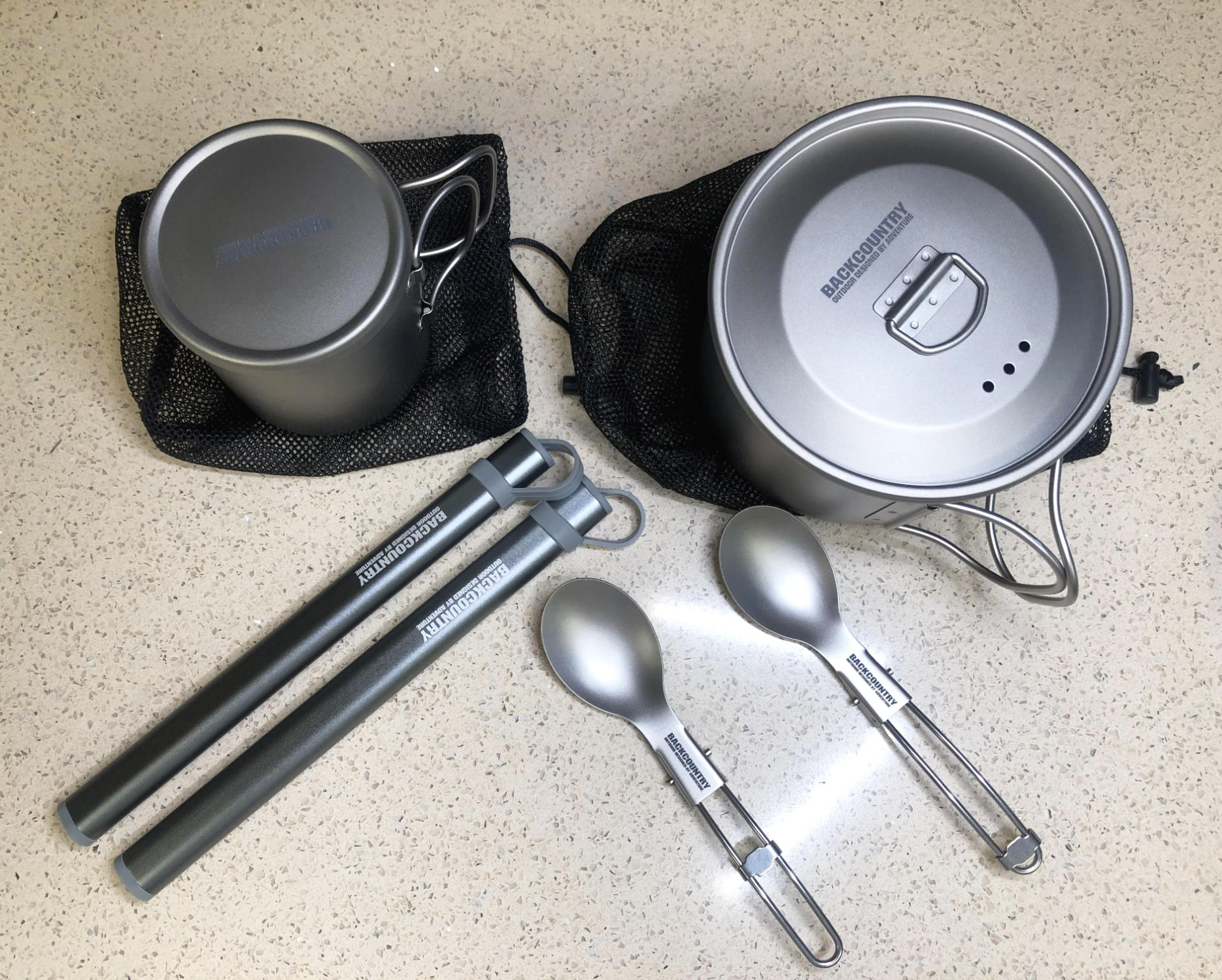 사진상의 모든 품목은 이번에 새로 장만한 텐트와 쉘터 판매처인 backcountry.co.kr (백컨트리) 에서 구입을 했다. 스노우픽, 아베나키, 미니멀웍스, 스노우라인, MSR, 백마 등등 여러 많은 티타늄 식기와 코펠들이 나오고 있는데, 제법 만듬새도 좋아 보이고 가격도 터무니 없지 않은 합리적인 것 같아 그냥 고민하지 않고 한 사이트에서 사게 되었다.