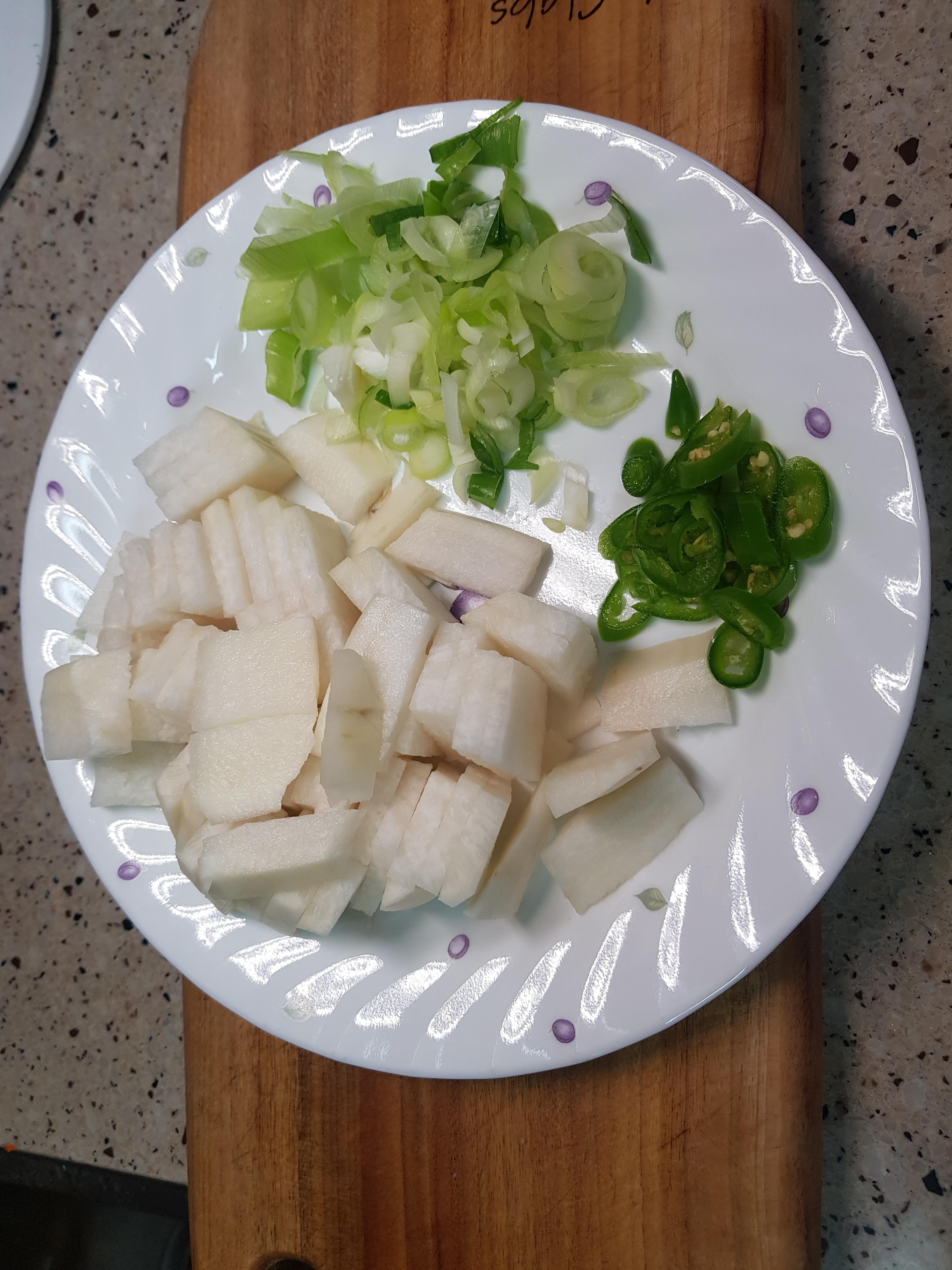 양념 : 국간장 1/2큰술, 고추가루 1큰술, 소금 약간, 마늘 1작은술