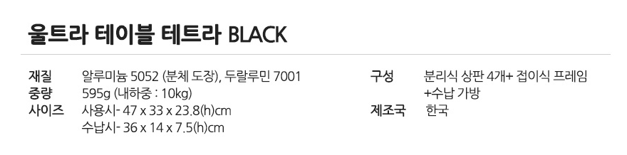 이 두가지 조건으로 찾다 보니 가장 무난한 백패킹 테이블이 울트라 테이블 - 테트라 였다. 많은 백패커들이 이 테이블을 쓰고 있는 걸로 봐서 구입해도 실패할것 같진 않았다.