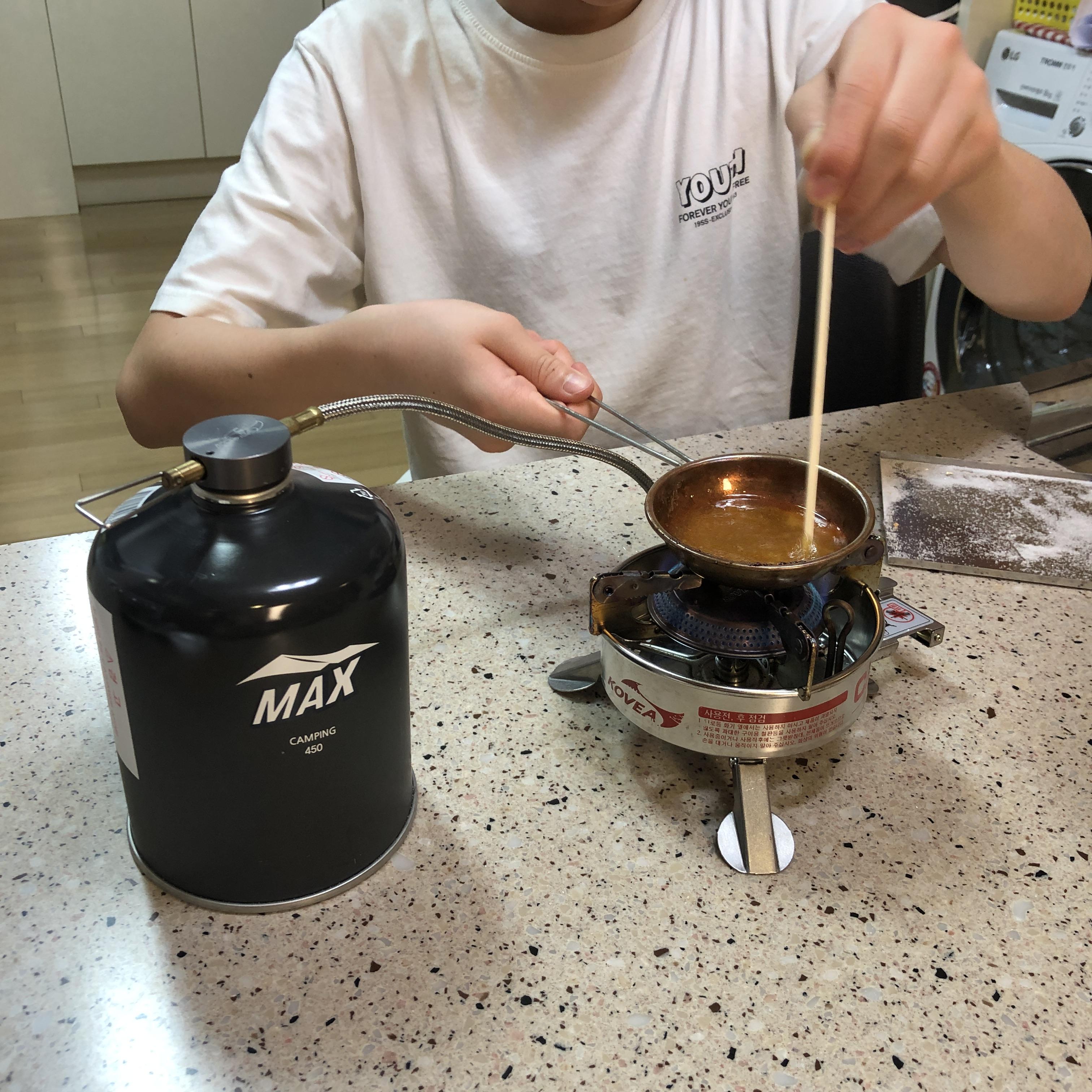 군산여행중에 달고나 가게에서 달고나 만드는 요령을 터득하고 나서, 집에서 야매로 해오던 달고나를 제대로 만들어 보는 시간.
