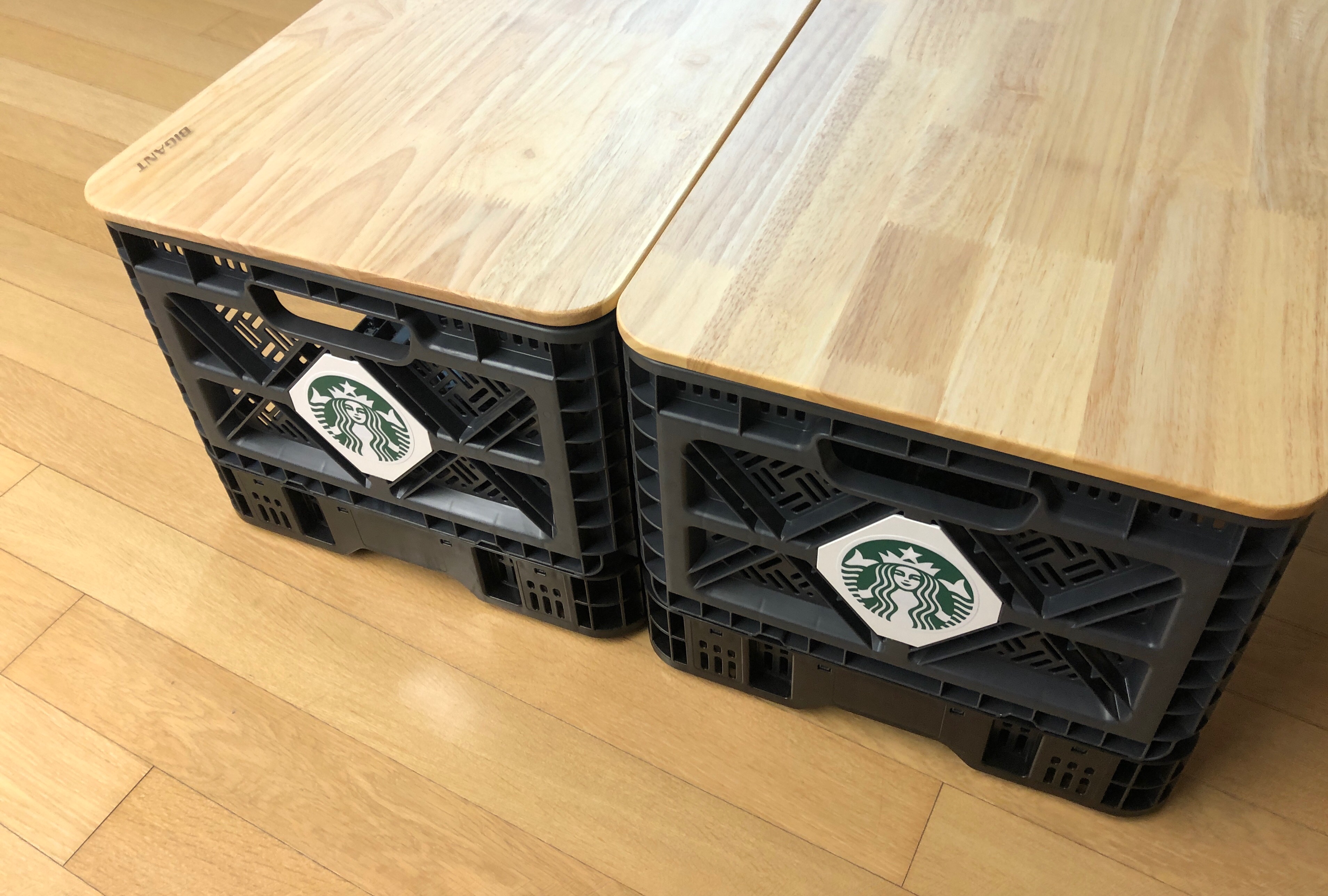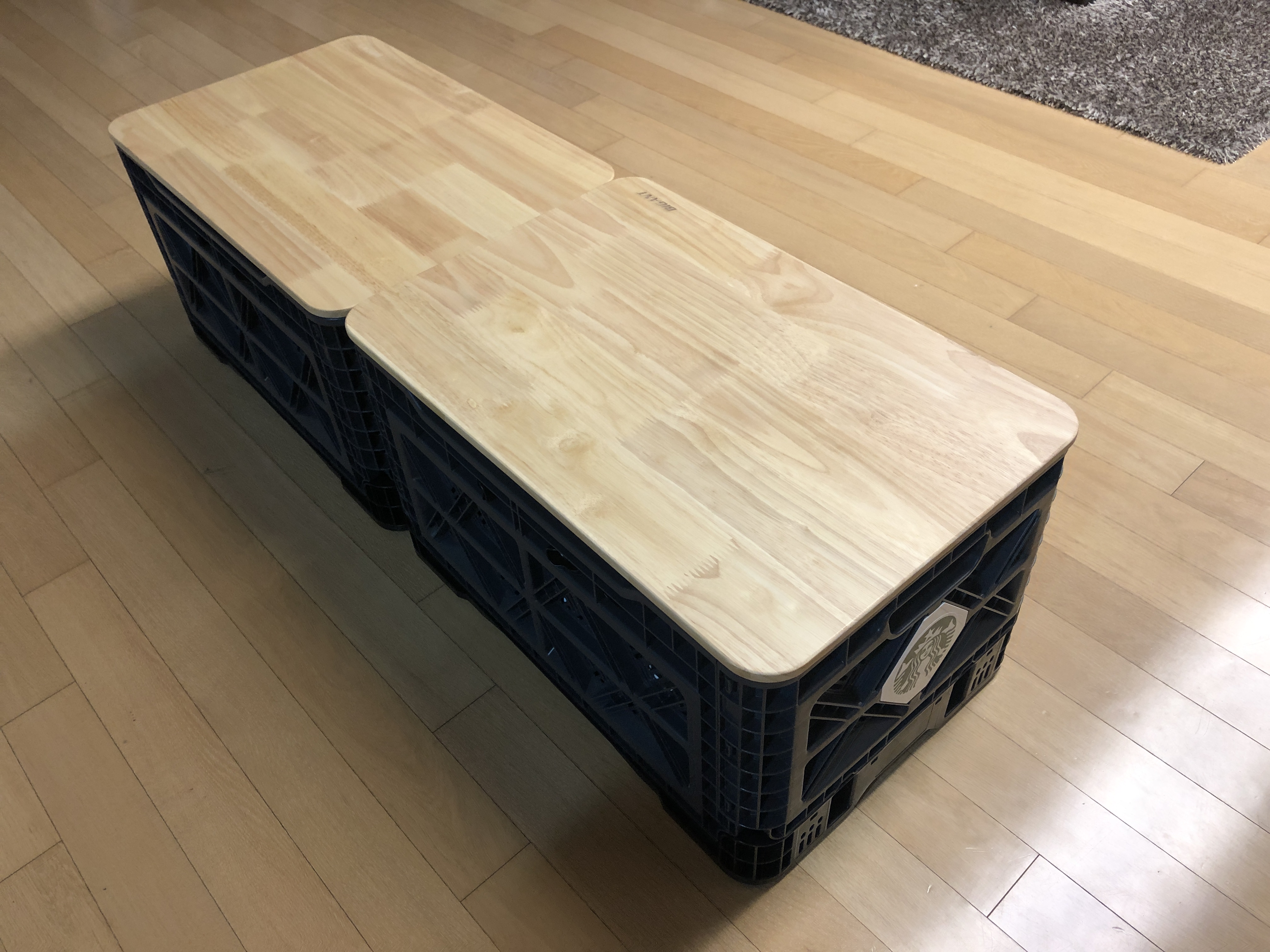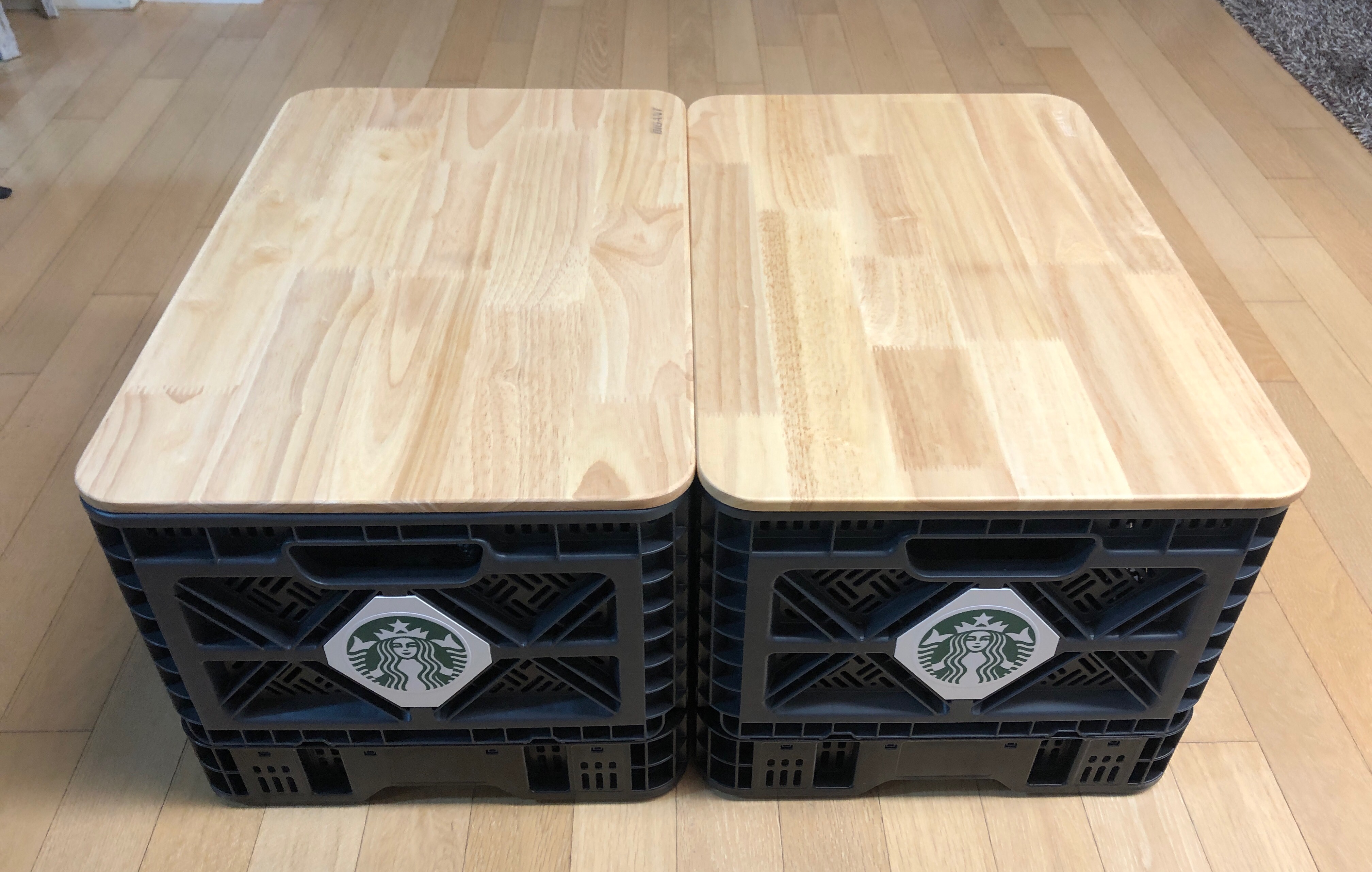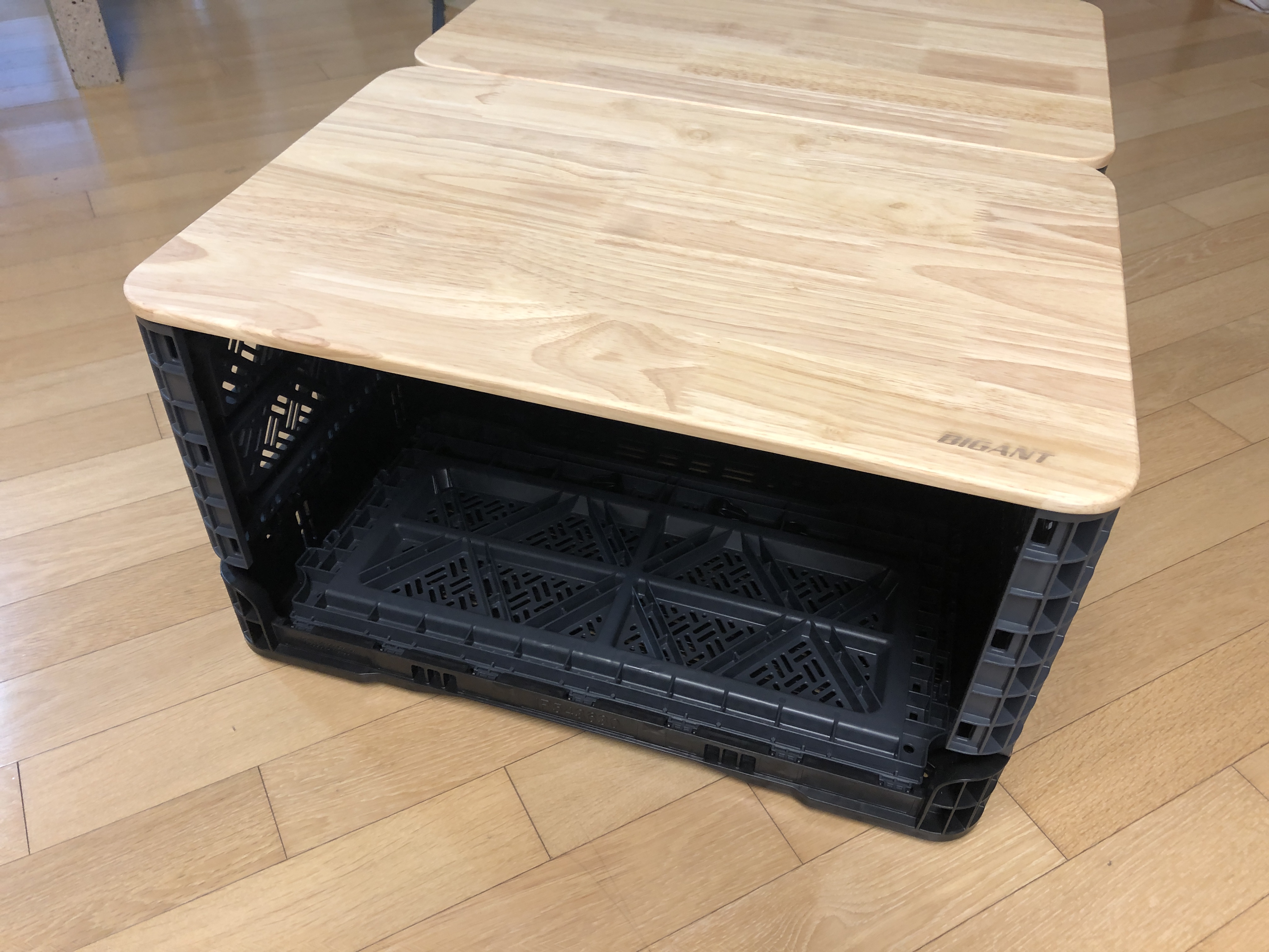 긴쪽 한면을 개방하면 물건 넣기 좋은데, 두개를 사면 양 사이드를 열어서 수납공간이 있는 테이블로 쓸수 있다.
