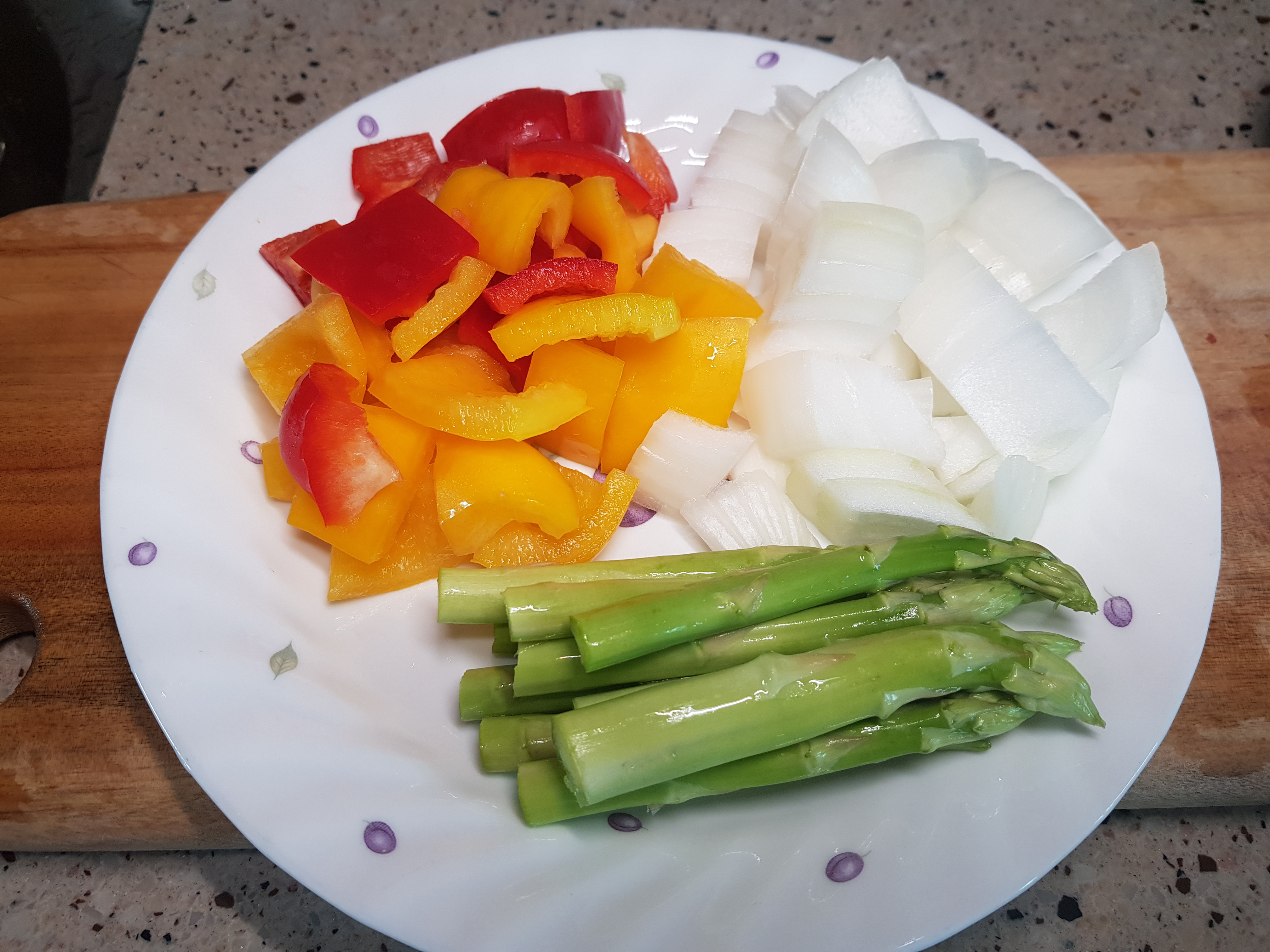 파프리카, 양파, 아스파라거스를 적당량 준비한다.
