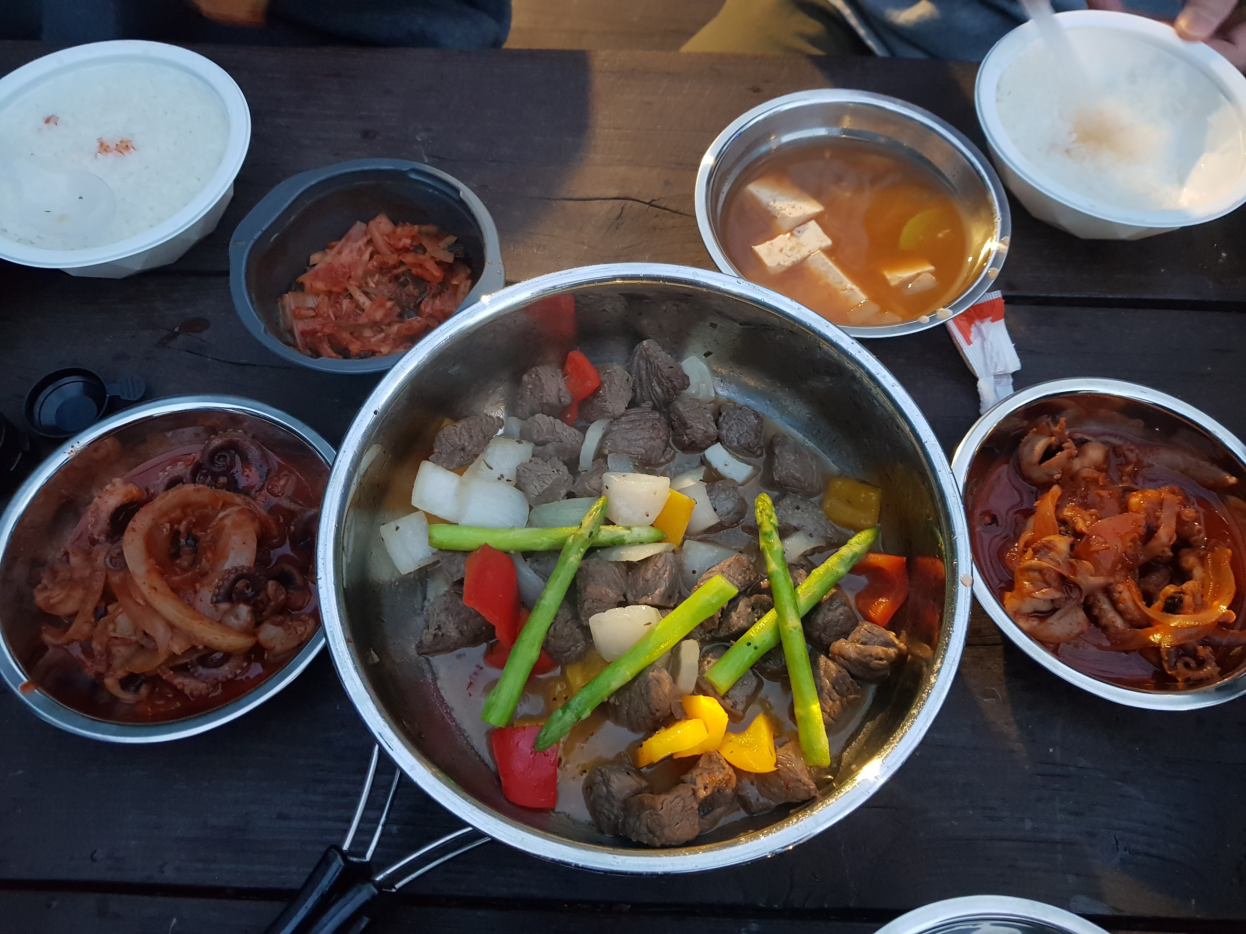 소고기 부채살 큐브스테이크, 캠핑 음식으로 정말 간단하고 좋은 것 같다. 한우가 너무 비싸 호주산 와규 꾸리살을 샀는데, 고기가 좀 질겼던 것이 가장 아쉬웠던 부분이다. 인터넷 레시피에는 부채살로 준비했다고 되어 있었는데, 나도 다음에는 부채살로 만들어봐야겠다.