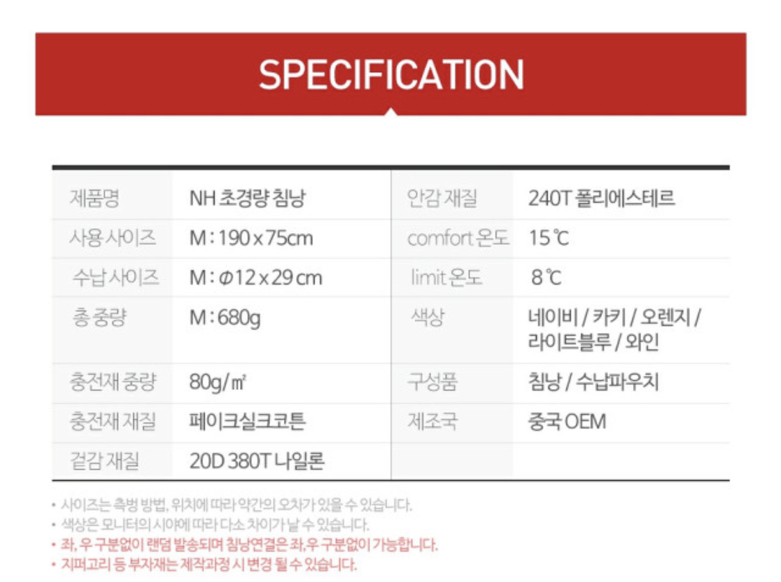 그러나 캠핑을 시작하는 시기가 여름인 지금, 구스 침낭이 더울것 같아 고민에 고민을 거듭하다가 3계절용 구스침낭은 지금 당장 필요한게 아니라 쌀쌀해지는 9월경에 사기로 하고, 우선 한여름에 쓸만한 얇은 솜침낭을 사기로 하여 고른 제품이 네이쳐하이크 하계용 솜침낭이다.