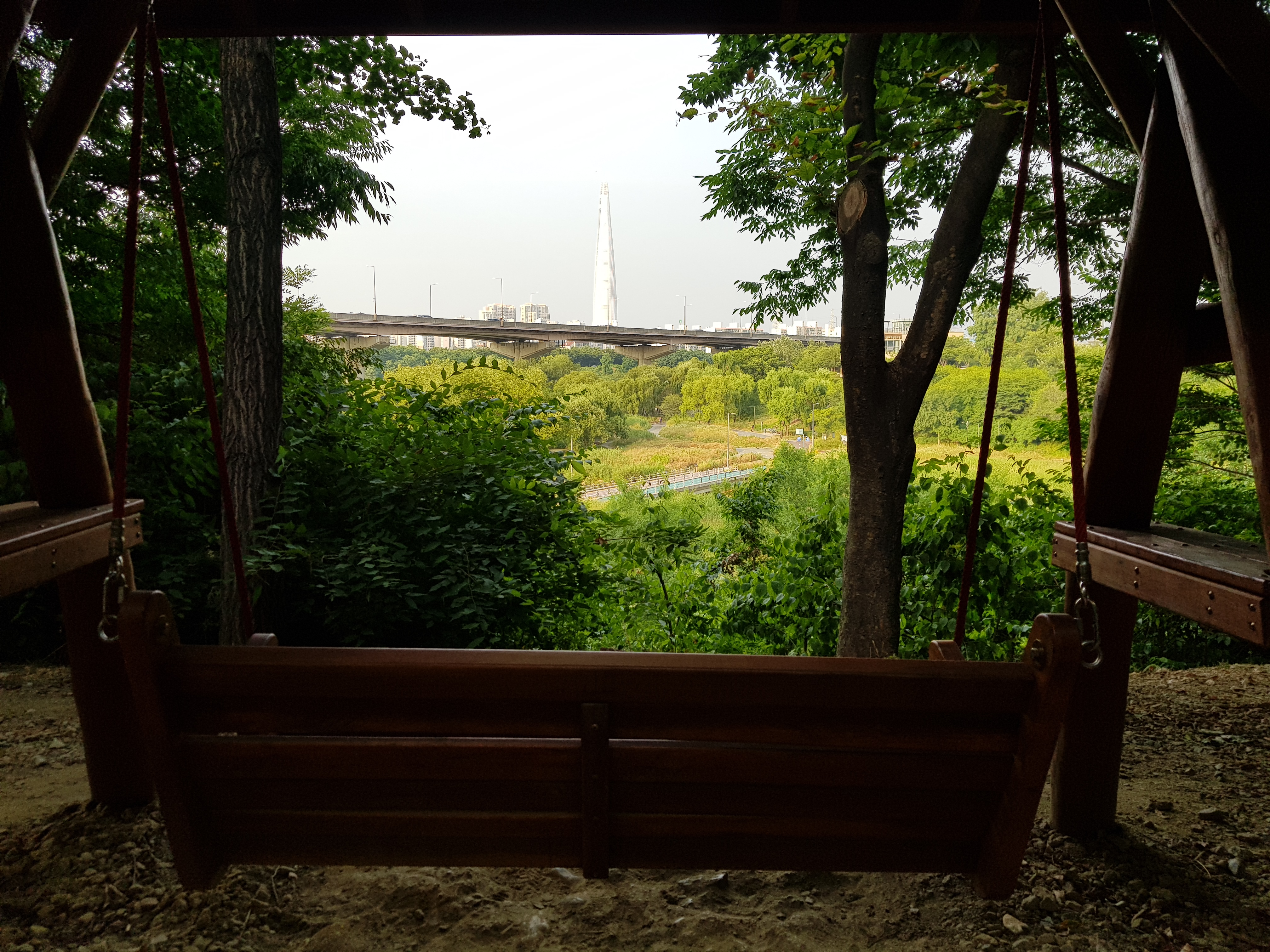 매일 걸을때마다 되도록이면 지루하지 않게 새로운 길을 찾아 걷는다. 갈때와 올때 절대 같은 길로 걷지 않는다. 길마다 보이는 뷰가 달라 매번 새로운 길을 걷는 느낌이다. 집에서 빠른 걸음으로 40분을 걸어가면 만날 수 있는 대치동 쌍용아파트 옆 공원 벤치. 벤치에 앉아 보는 뷰가 정말 좋다.