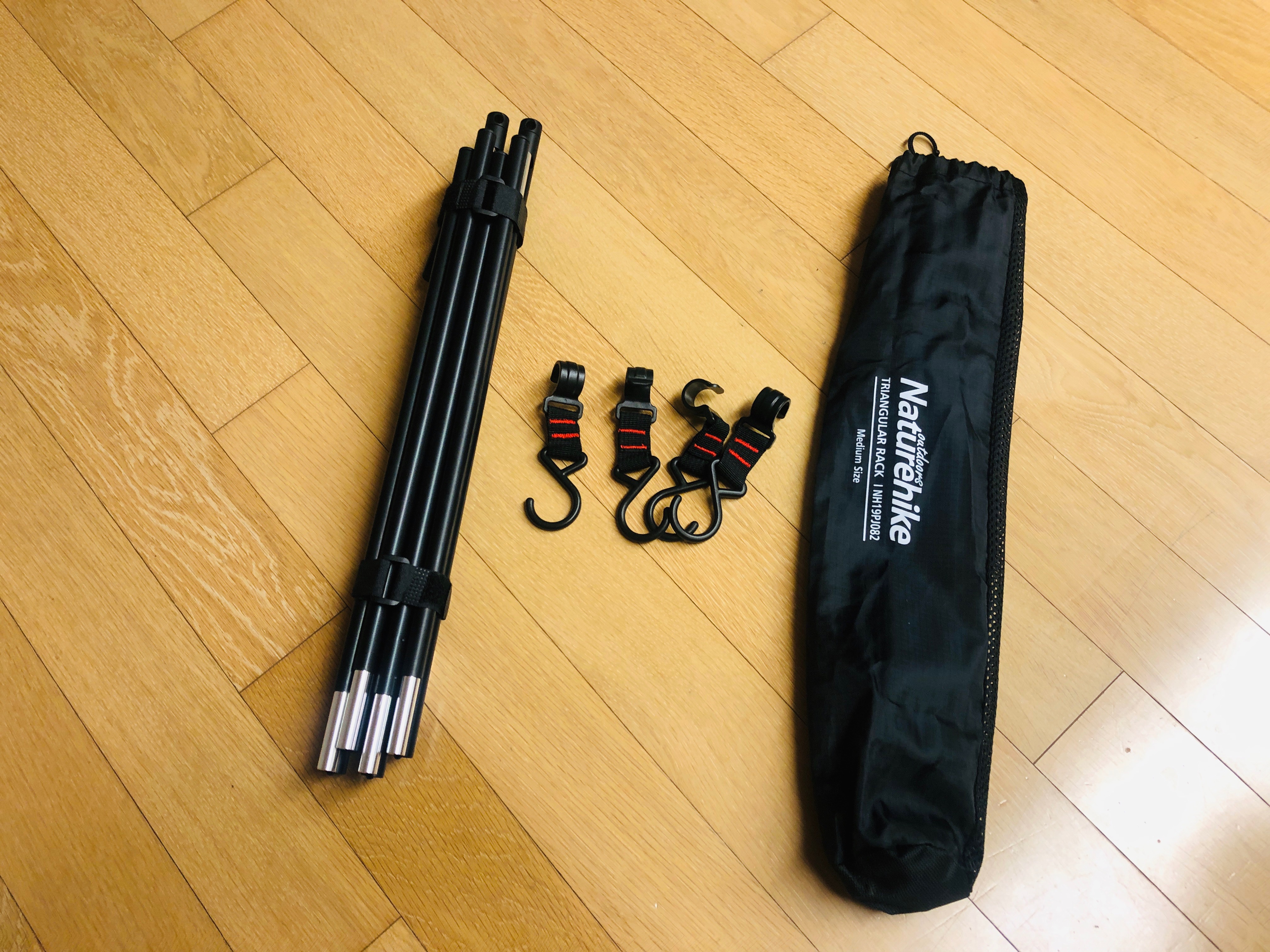 구성품. 후크는 4 개 들어있고 구입시 후크 추가가 가능했으나, 비너를 활용해도 될것 같아 기본 구성품으로 구입하였다.