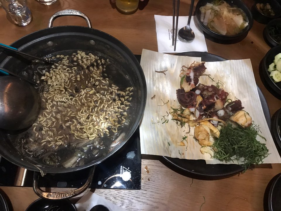 마지막으로 탕에 라면사리 넣어 먹기. 먹물라면. 그 맛 또한 일품이었다. 정말 가족들 데리고 꼭 한번...아니 여러번 와야겠다. ㅎㅎ