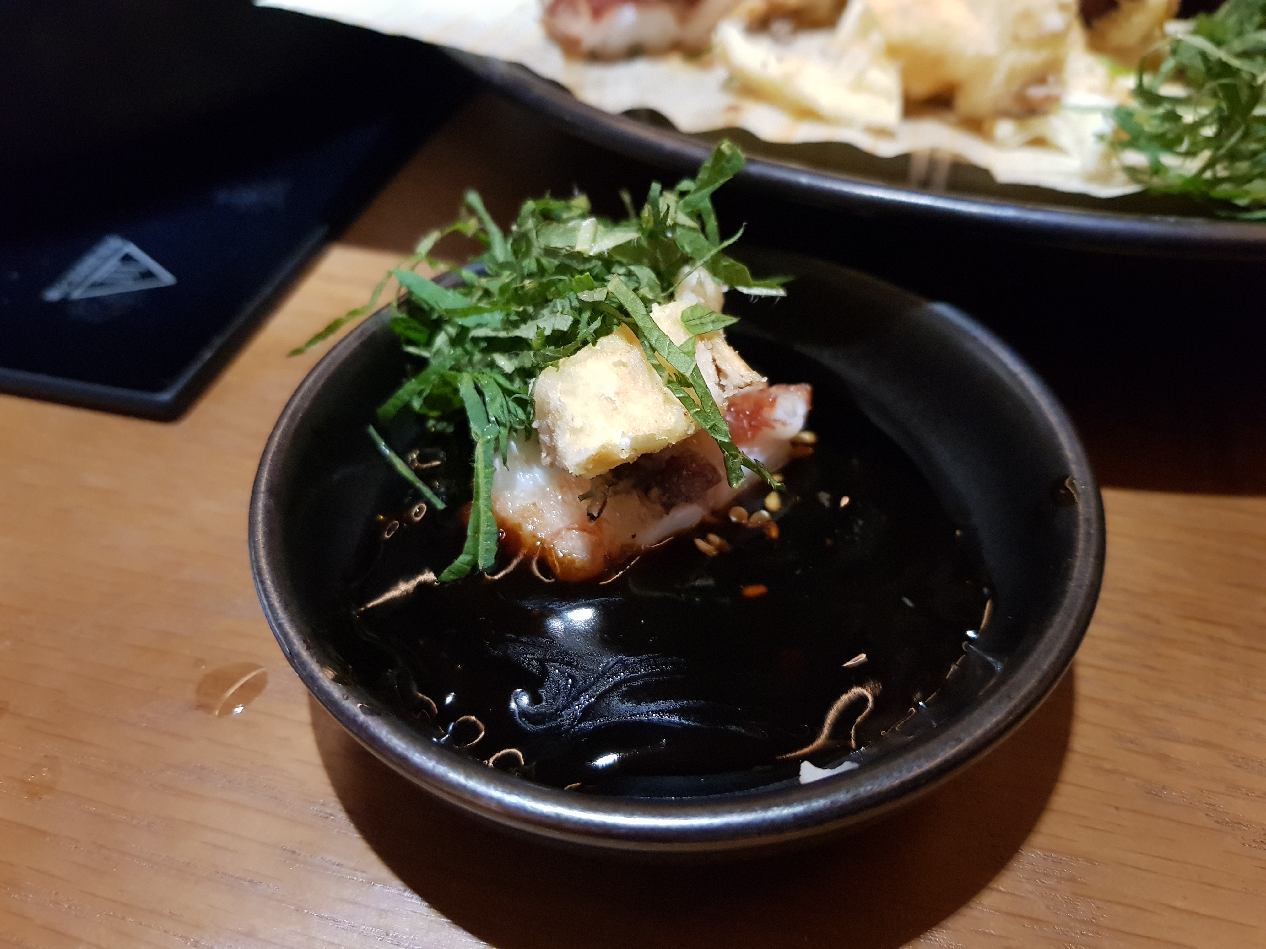문어가 살짝 익으면 숙회를 먼저 준비해준다. 그리고, 문어 다리 8개 중 튀김으로 몇개를 할지를 묻는다. 튀김용 문어다리는 주방으로 들어가고 나머지는 테이블에서 바로 예쁘게 썰어주신다. 제사때 매번 질긴 문어만 먹어봐서 삶은 문어맛이 그것이 전부인줄 알았는데, 식감이 정말 너무 부드럽다.