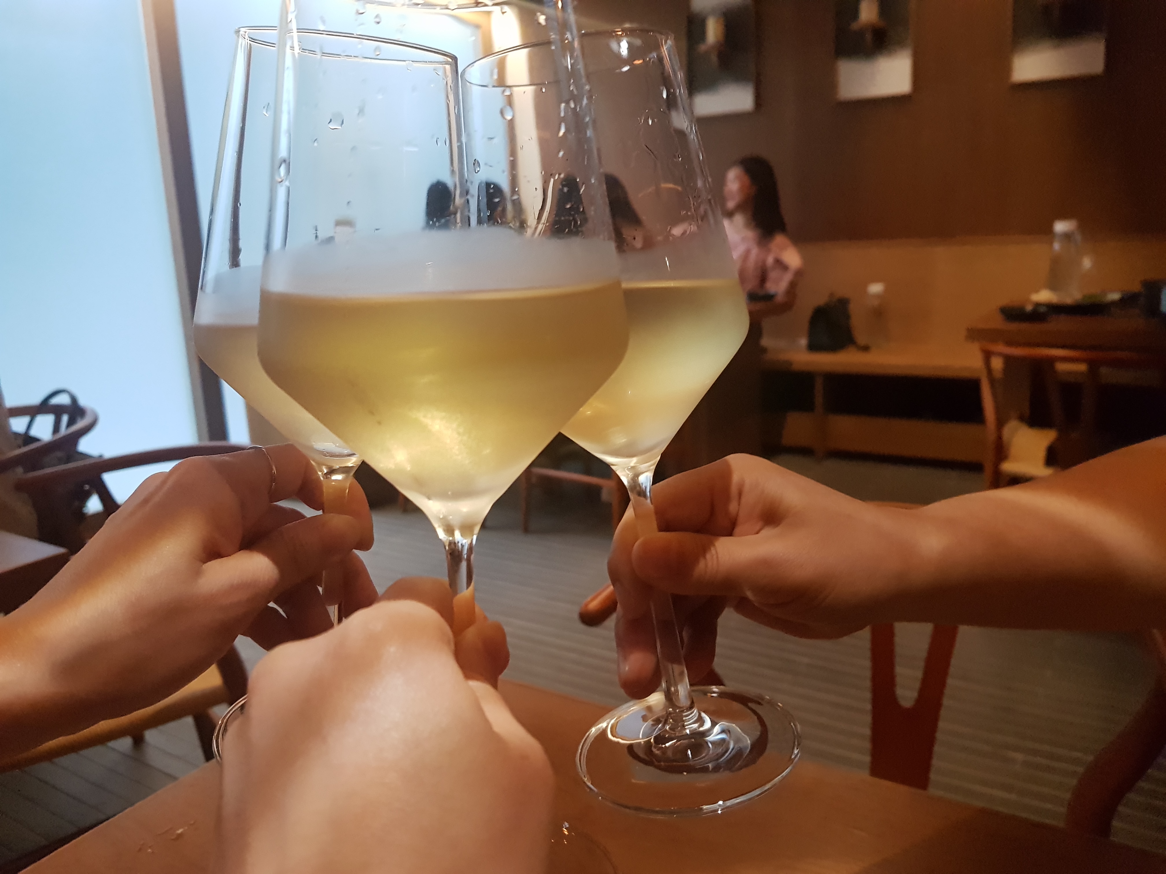 다른 테이블에서 죄다 와인을 시키길래 우리도 해산물과 어울리는 화이트 와인 주문.ㅎㅎ