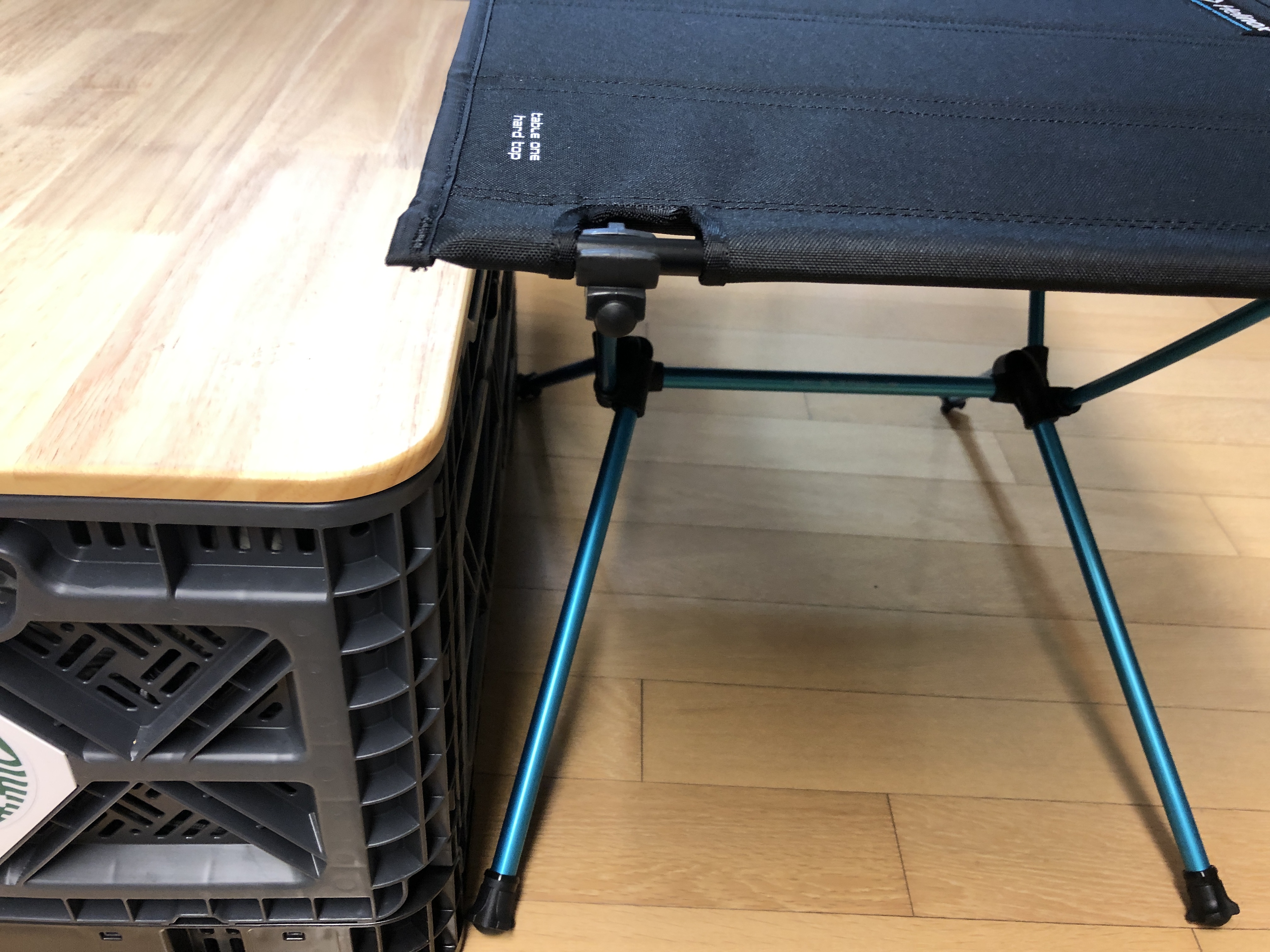 캠핑테이블로 빅앤트 캠핑박스2 개를 원목상판을 올려 휴양림 같은데로 캠핑을 다니는데 큰 불편함이 없어 보였으나, 막상 원목상판+캠핑박스 조합을 사용해보면 캠핑박스안의 물건을 꺼낼때마다 상판을 들어올려야 하는것이 여간 불편한게 아니다. 그리고 캠핑박스의 높이가 30cm 가량 되는데 사용하고 있는 헬리녹스 체어원/투와 함께 쓰면 좀 낮아서 불편하기도 하다.