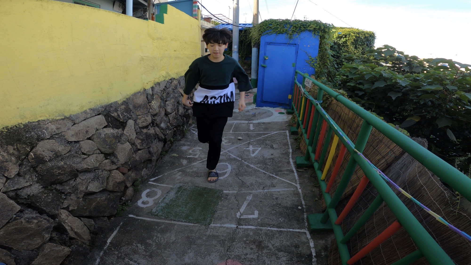사방치기 놀이 할수 있게 바닥에 놀이판도 그려져 있고