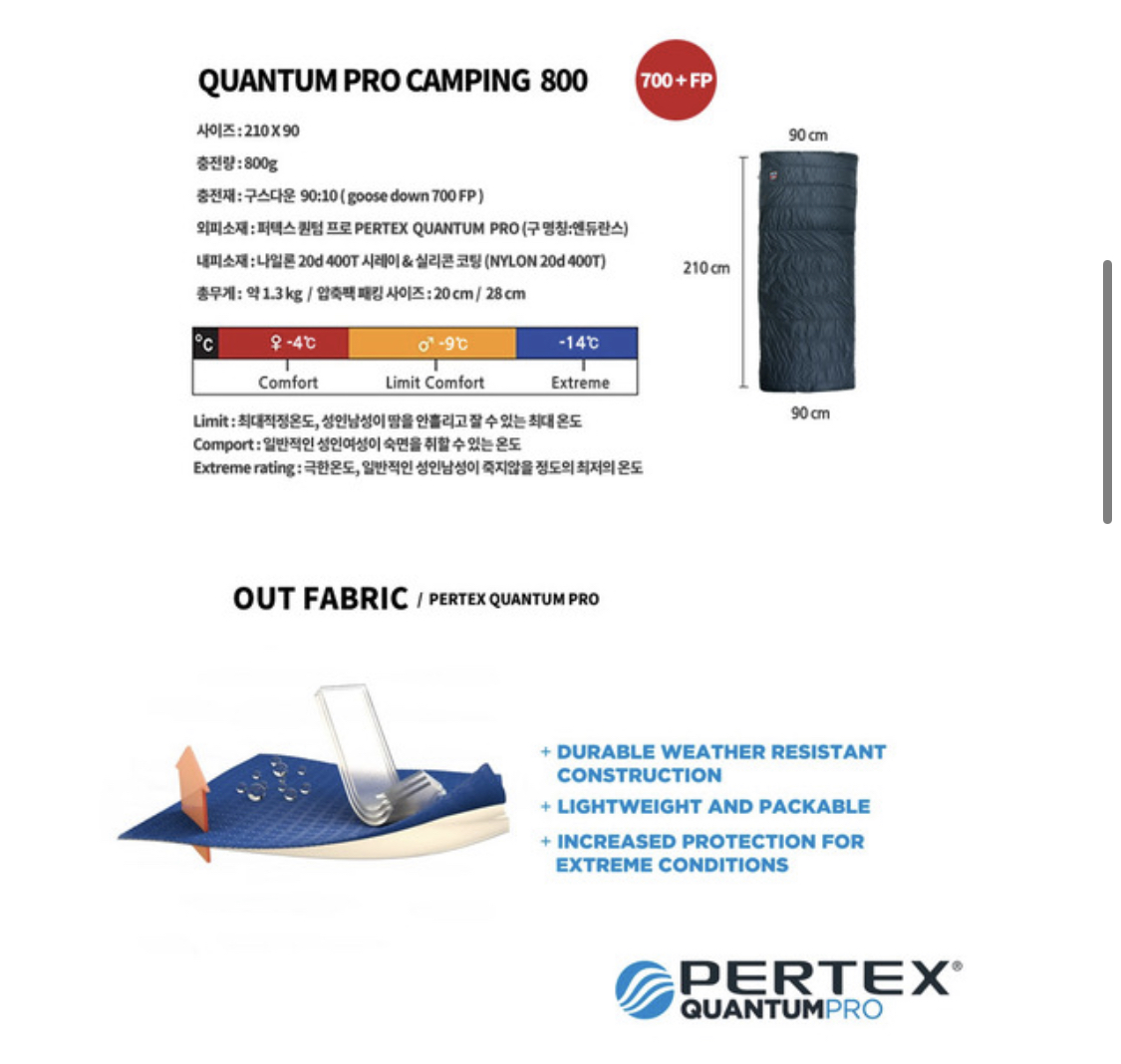 이 프로캠핑800 은 다 펼칠수 있어서 두명이서 덮고 잘수도 있어보인다.