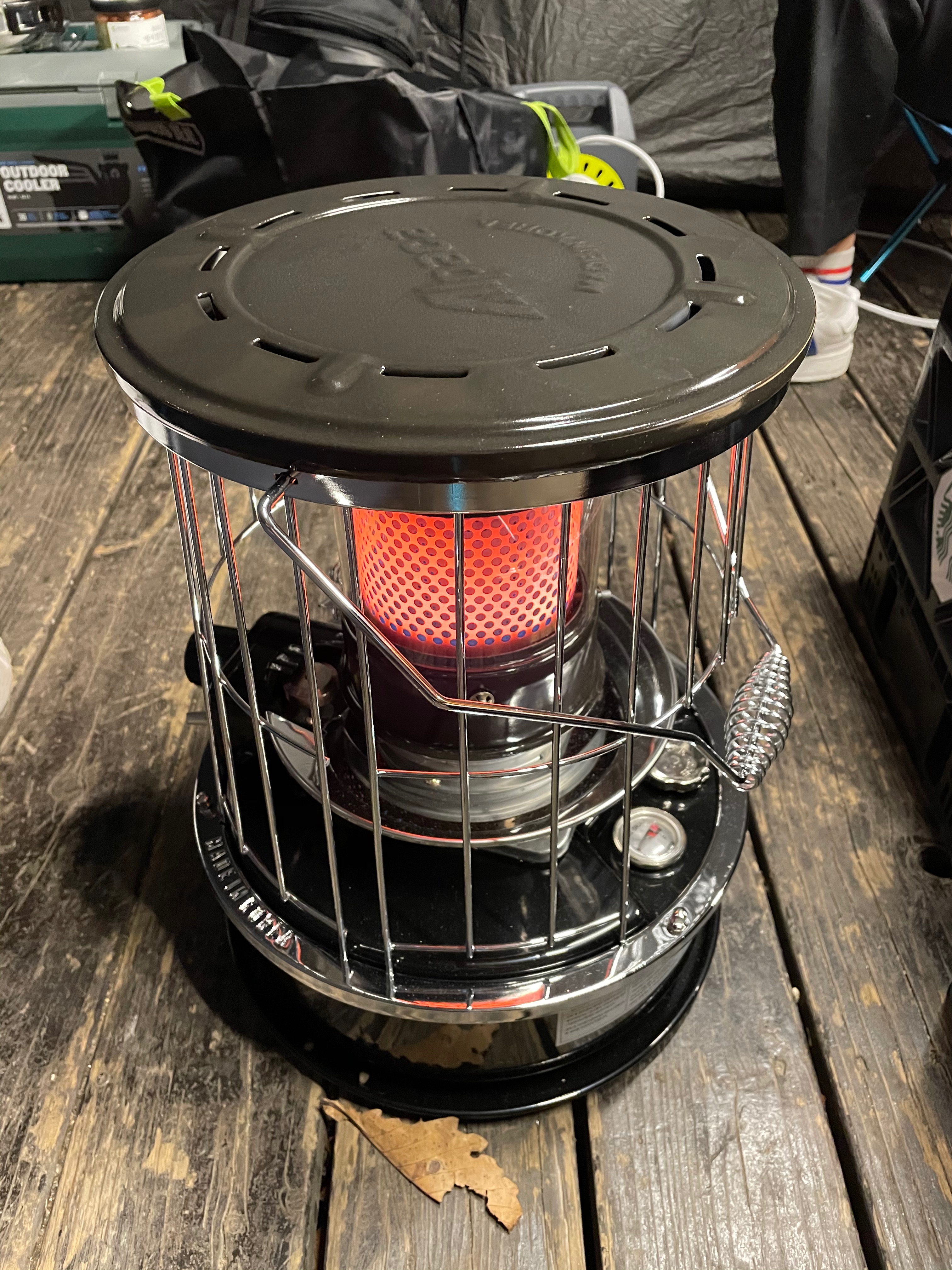 - 난로(등유) : 등유만 있으면 사용가능. 아이들이 많은 집의 경우 화상의 우려. 따뜻한 공기가 위로 올라가는 대류형이라선풍기나 서큘레이터등으로 올라가는 따뜻한 공기를 아래로 불어줘야 실내가 따뜻해짐. 난로 상판에 고구마를 구워먹거나 물을 끓일수 있는 장점.