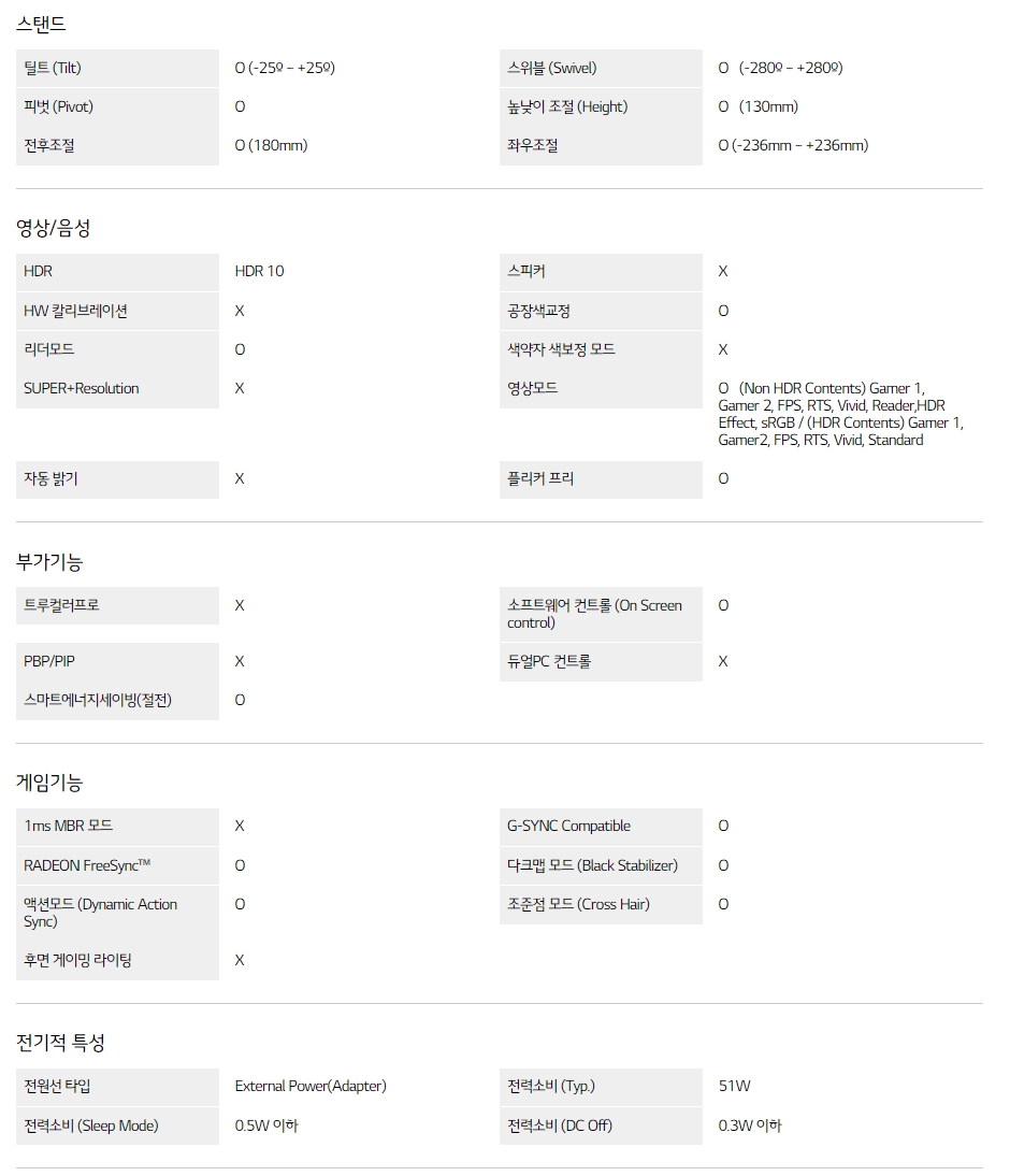 * 제조사 스펙 :
