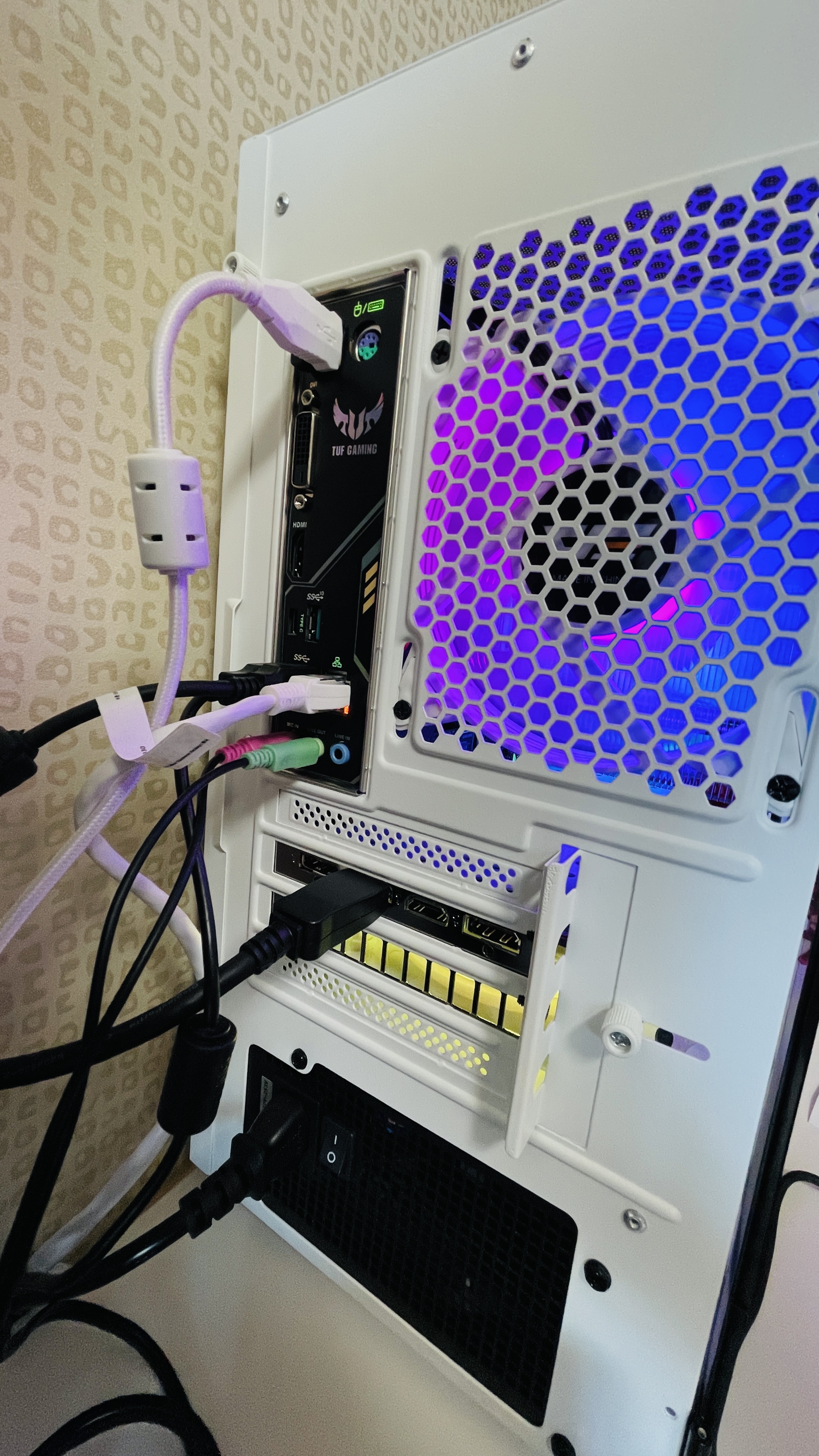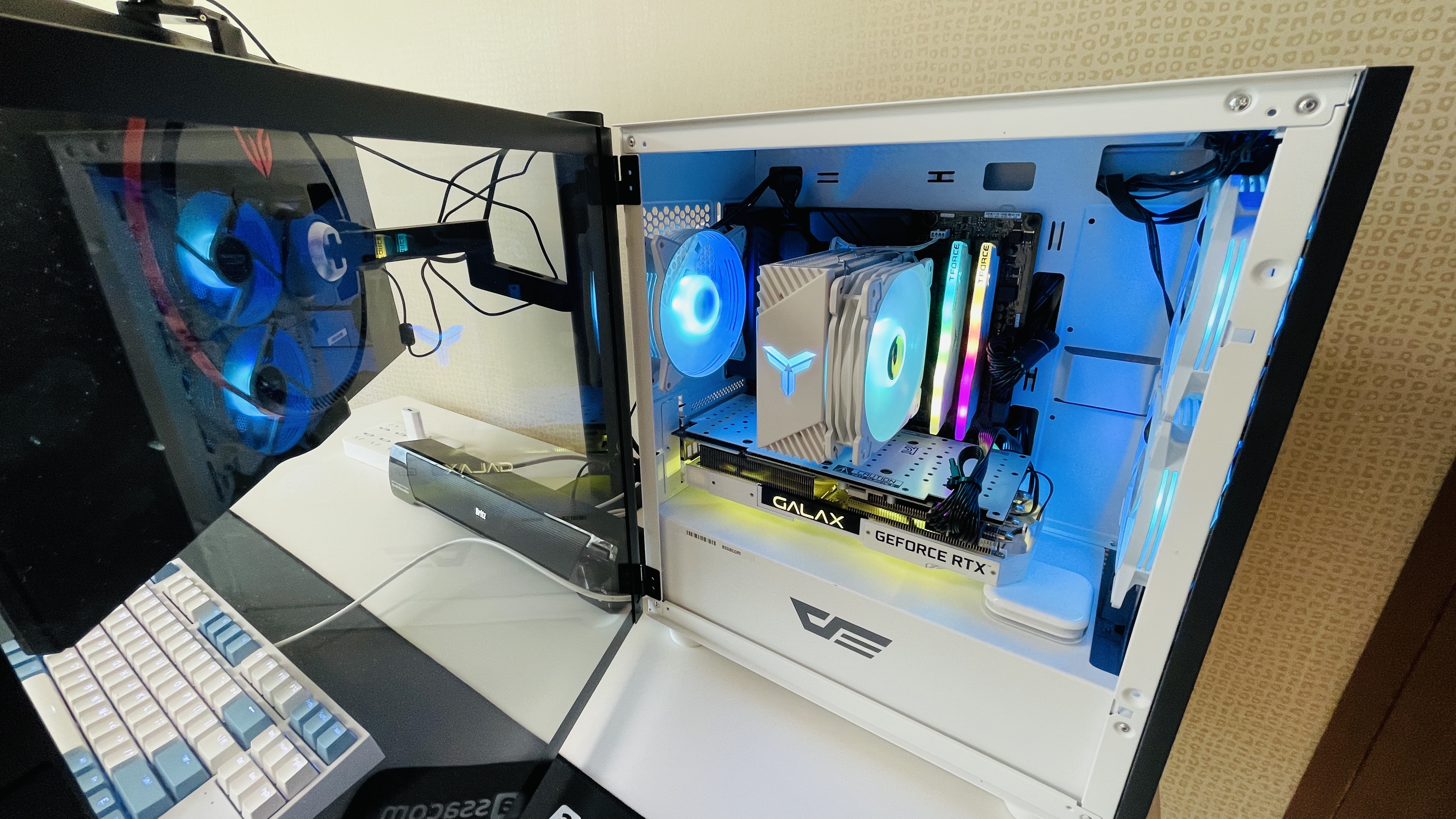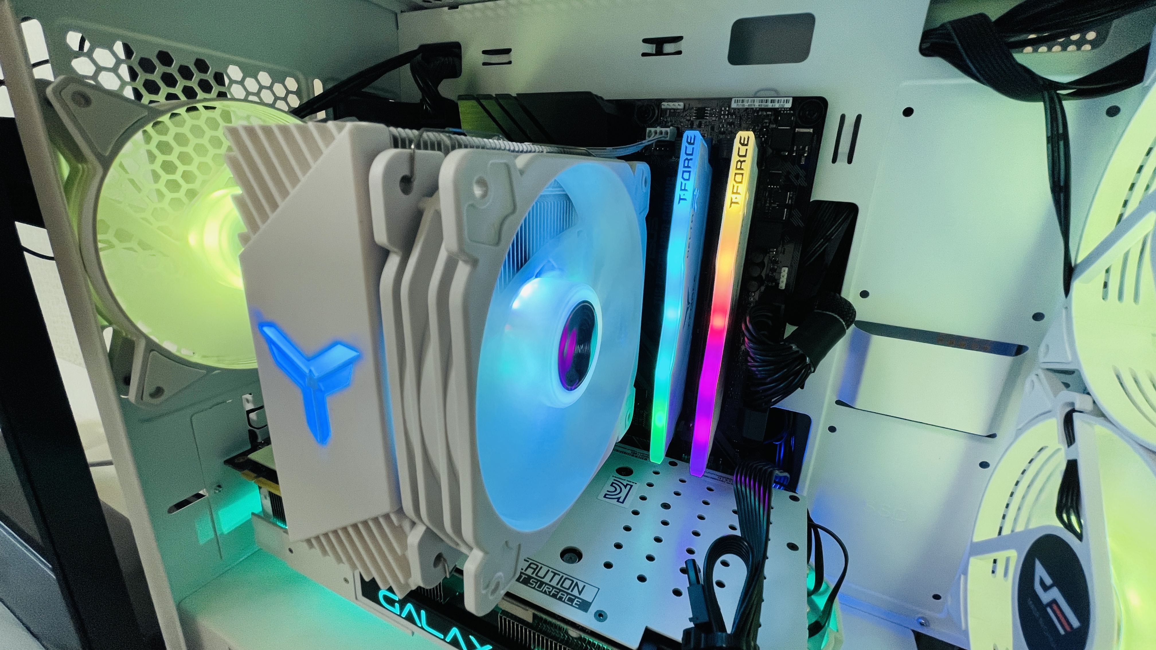 기본쿨러 대신에 화이트 컨셉에 맞게 추가로 견적에 넣은 화이트쿨러 (존스보 CR-1000 ARGB)와 메모리. 아수스 메인보드의 Aura 와 조명이 sync 되진 않는것 같다. CD/DVD-ROM이 사라지면서 컴퓨터 본체 내부가 깔끔해진것 같아 좋다.